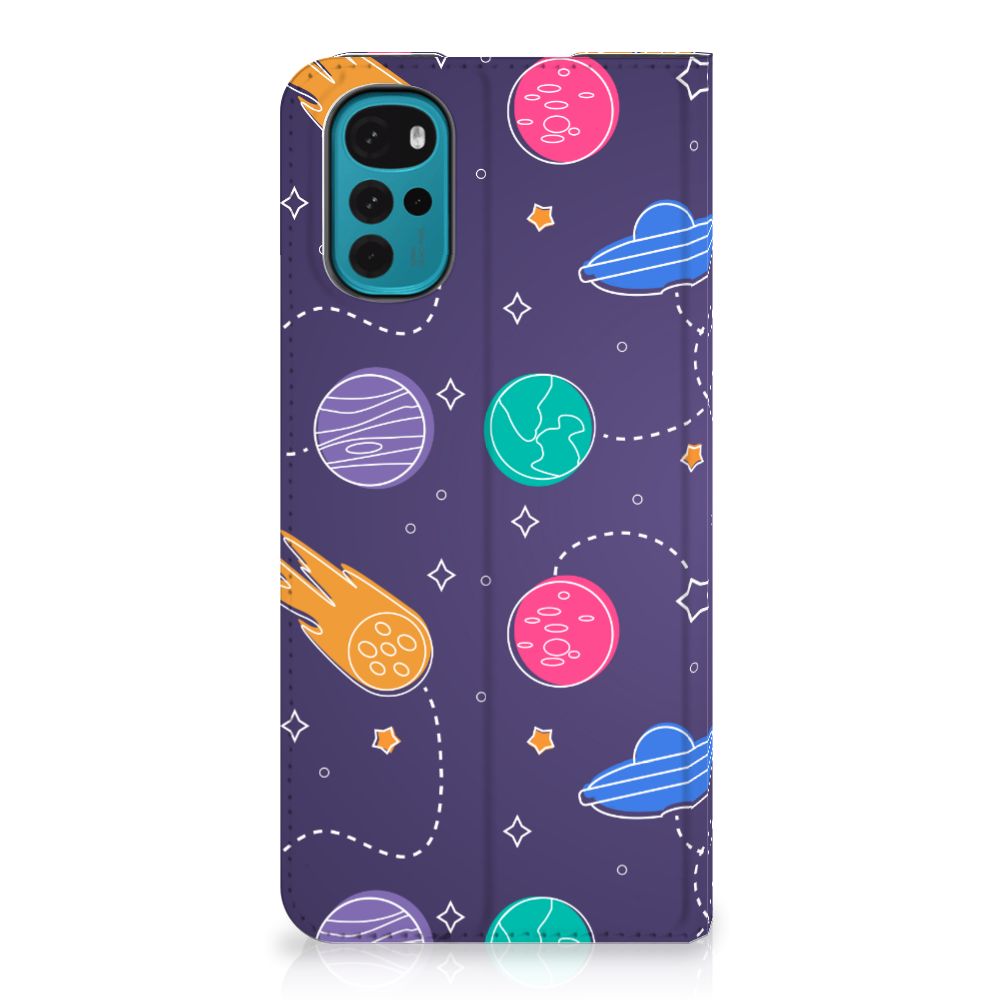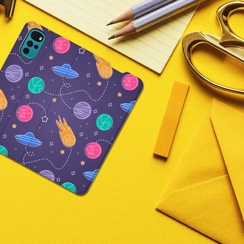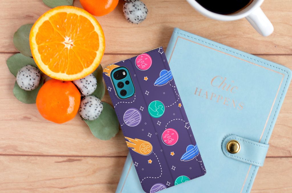 Ben je een beetje geïnteresseerd in buitenaards leven? Dan kan je wel eens enthousiast raken van deze Motorola Moto G22 Hippe Standcase met Space print. Dus mensen die van science fiction houden zullen deze case ongetwijfeld mooi vinden. Er zijn verschillende planeten en vliegende schotels te ontdekken in dit design hoesje. Dit kunstwerkje is voor heel weinig geld te bestellen op onze website. Je krijgt er maximale bescherming van je smartphone voor terug. De stand case beschermt jouw telefoon aan alle kanten en beschikt over een 1 opbergvakje en een speciale standaard. Het hoesje wordt afgesloten met een magneet aan de binnenzijde. De houder aan de binnenzijde is van TPU. Je zult ontdekken dat dit hele stevige telefoonhoesje een heel goede bescherming biedt tegen alle vormen van schade. Met dit hoesje hoef je niet bang te zijn dat er krassen op je design komen of scheuren in je scherm.