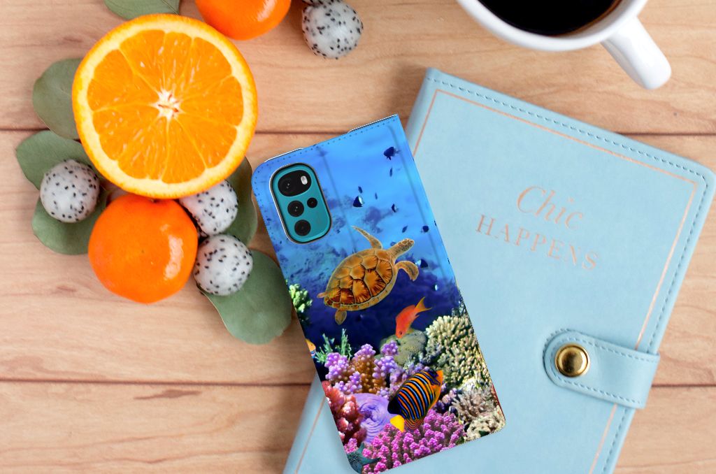 Dit kleurrijke hoesje met tropische Vissen is een ware eyecatcher. Als je aan het duiken bent en je treft een school aan met dit soort opvallende vissen, dan heb je een geweldige ervaring. Maar je hoeft er eigenlijk niet per se het water voor in te duiken. Want wij hebben een schitterende verzameling vissen op dit design hoesje gezet. Met onze zeer geavanceerde printer zetten we de afbeelding van vissen op alle zijden van de Motorola Moto G22 Hoesje maken. De case heeft aan de binnenkant een vakje waarin je jouw creditcard of ander pasje kwijt kunt. Ga je een dagje vissen, dan hoef je de portemonnee dus ook niet op zak te hebben. Verder is je telefoon natuurlijk maximaal beschermd met deze stand case met print van tropische vissen. De houder aan de binnenzijde van het design hoesje met vissen print is van TPU.