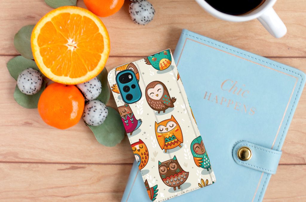 Deze Motorola Moto G22 Hoesje maken met Vrolijke Uilen is echt iets voor de nachtbrakers onder ons. De uil is zoals je weet bij uitstek een vogel die in de nachtelijke uren actief is. Ben jij ook iemand die s ’nachts tot leven komt, dan is deze stand case met uilen in felle kleuren echt iets voor jou. Als je tot in de late uurtjes op stap bent, komt het goed uit dat jouw smartphone aan alle kanten goed is beschermd met deze stand case met uilen. De case met uilen heeft een magnetische sluiting aan de binnenkant, waardoor de hoes niet openklapt als die uit je handen valt. Jouw creditcard of pinpas heb je als het goed is veilig opgeborgen in het vakje aan de binnenzijde. De houder aan de binnenzijde van de case met print van uilen is van het flexibele TPU. De wat ruigere types hebben veel baat bij deze stand case met uilen in felle kleuren.