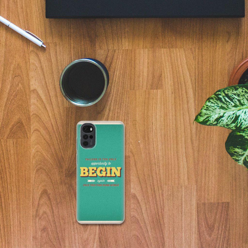 Ben je op zoek naar een uniek telefoonhoesje voor je Motorola Moto G22? Dan ben je bij B2C Telecom aan het juiste adres! Speciaal voor jou hebben we dit prachtige Quote Begin design in onze collectie hoesjes opgenomen. Het design wordt bedrukt op een Siliconen hoesje met naam en is gemaakt van flexibel rubber. Het design wordt alleen aan de bovenkant van het hoesje bedrukt en de randen blijven transparant. Aan de zijkanten zijn uitsparingen gemaakt waardoor je met gemak alle knoppen en poorten kunt bedienen. Wij adviseren om dit hoesje in combinatie met een screenprotector te gebruiken voor een langere levensduur van je telefoon. Wil je dit design hoesje nog iets extra's geven? Voeg dan gratis je naam of een quote toe! Is dit design hoesje toch niet helemaal wat je zocht? Ontwerp dan zelf een hoesje in ons ontwerpprogramma.