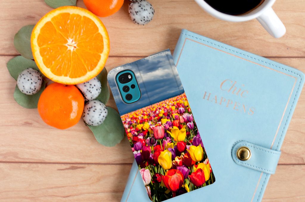 De tulp is een oer-Nederlandse bloem en heeft een lange geschiedenis. Deze Motorola Moto G22 Smart Cover met Tulpen ziet er bijzonder kleurrijk uit. Dit fleurige smartphone hoesje geeft een bijzondere bescherming van jouw apparaat. Tulpen zijn ideaal voor een kleurrijk begin van het tuinseizoen. Iedereen wordt er vrolijk van om te zien hoe deze bloemen het voorjaar kleur geven en het begin van de warmere tijd van het jaar aankondigen. Dan kan het toch niet anders of jij wordt heel erg blij van deze stand case met tulpen? Deze populaire stand case heeft ruimte voor een pasje of briefgeld aan de binnenzijde en wordt magnetisch afgesloten. De houder aan de binnenkant is van TPU en de case wordt aan alle zijden bedrukt met tulpen. Je kunt ook zelf een stand case maken met daarop jouw favoriete bloemen.