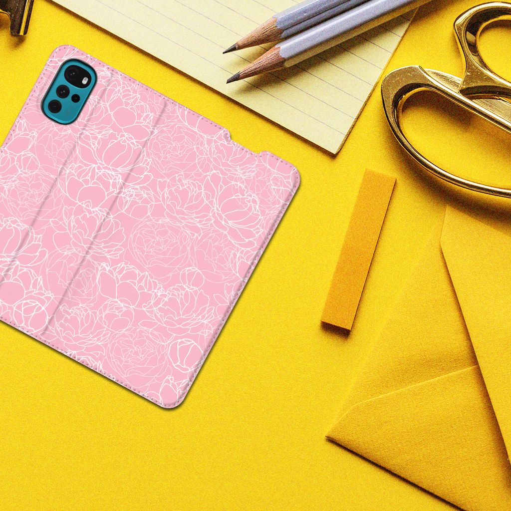 De White Flowers op dit Motorola Moto G22 Smart Cover geven jouw smartphone een zeer fleurig uiterlijk. Je wordt er ook meteen een stuk rustiger van als je aan het werk bent. Valt de telefoon een keer op de grond, dan zal er dankzij de stand case met witte bloemen geen schade ontstaan. Onze stand hoesjes met witte bloemen zien er zeer prettig uit en zijn heel praktisch, getuige onder meer het vakje aan de binnenkant en de handige standaard waarmee je de telefoon op tafel neer kunt zetten. Alle zijden van de stand case worden bedrukt met witte bloemen. Op deze stand case van leer en TPU (houder aan de binnenkant) kun je trouwens ook je eigen ontwerp zetten. In een paar simpele stappen maak je zelf een design hoesje met daarop jouw favoriete bloemen.