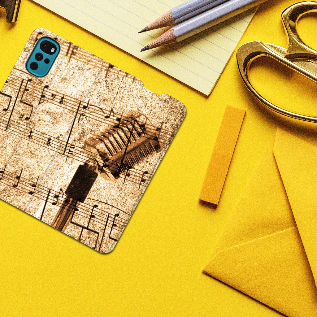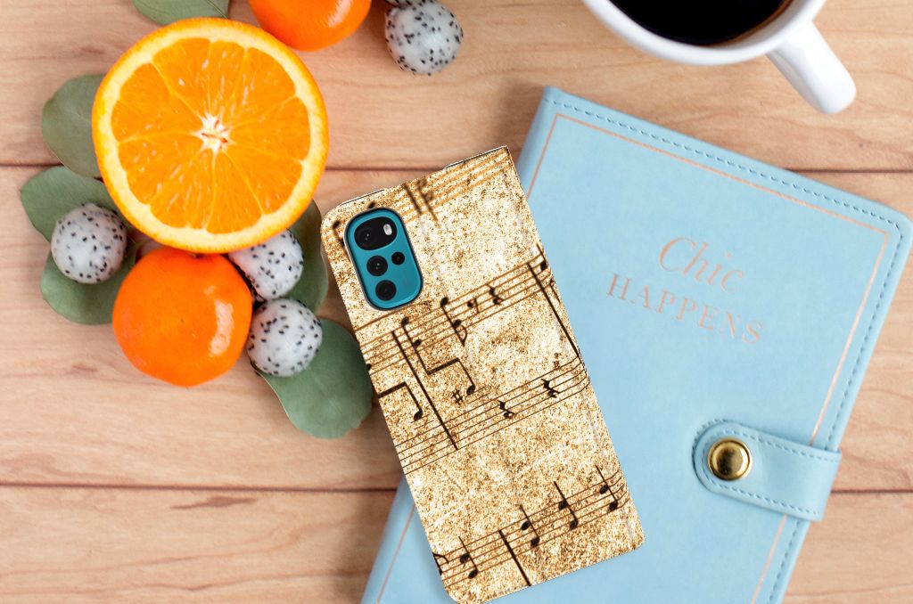 Ben je muzikant, dan is dit design hoesje met Bladmuziek wellicht echt iets voor jou. Met de intrede van nieuwe media wordt de rol van papieren bladmuziek teruggedrongen. Steeds vaker treft men 'bladmuziek' op een beeldschermapparaat, zoals een tablet-pc, e-reader of iPad aan. Gelukkig maar, want als er geen nieuwe media zouden zijn, hadden wij ook nooit onze Phone Case Designer kunnen ontwerpen. Met deze unieke ontwerpmodule kun je jouw favoriete band of artiest op je smartphone hoesje zetten, maar je kunt ook gaan voor dit prachtige design hoesje met print van bladmuziek. Het design staat op een Motorola Moto G22 Stand Case. Deze case beschermt jouw telefoon aan alle kanten en beschikt over een 1 opbergvakje en een speciale standaard. Het hoesje wordt afgesloten met een magneet aan de binnenzijde. De houder aan de binnenzijde is van TPU. Alle zijden van de stand case worden bedrukt.