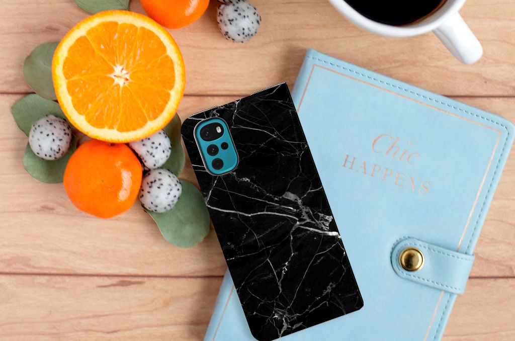Dit design hoesje met Marmer Zwart is voor de artistieke personen onder ons. De Grieken en Romeinen wisten het materiaal al te waarderen door het in de bouw toe te passen. Naast het witte marmer met haar zacht grijze geaderde belijning zijn de diverse soorten in een gevarieerd kleurenpallet te krijgen. We hebben mooie kleuren op design hoesjes gezet, zoals in dit geval zwart marmer. Dit is een Motorola Moto G22 Standcase met marmer in zwarte kleur. Het marmer wordt bedrukt op alle zijden van een stand case, die beschikt over 1 vakje voor een pasje en een magnetische sluiting aan de binnenzijde. Verder heeft de hoes een houder van TPU. De rijkdom aan kleuren en varianties in afwerking geeft ontwerpers de vrijheid om met marmer hele mooie architectonische projecten te realiseren. Wij hebben onze ontwerper tevens veel vrijheid gegeven. Het resultaat zie je terug in deze stand case met zwart marmer, dat de ideale bescherming voor jouw smartphone biedt.