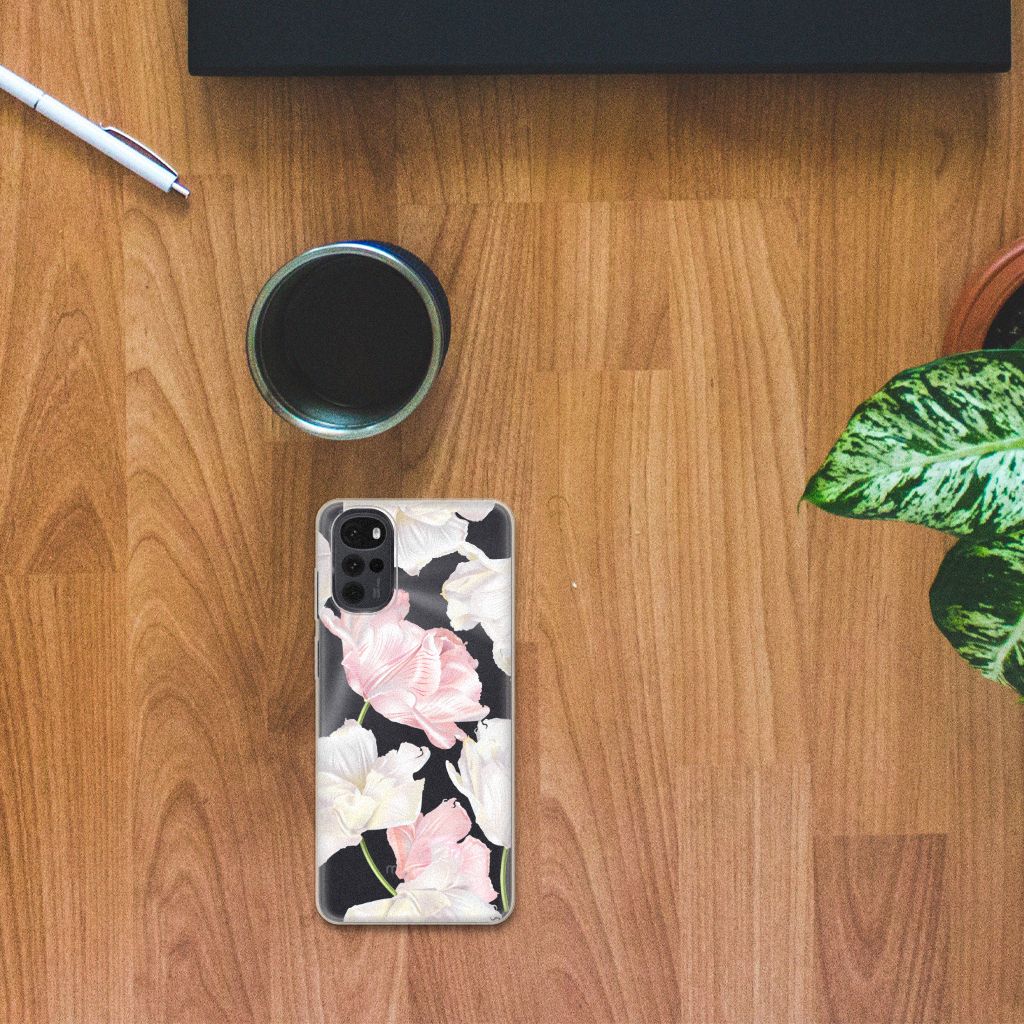 Een bosje bloemen doet een mens (en zijn smartphone) goed. De witte en roze bloemen op deze Motorola Moto G22 TPU Case geven jouw smartphone een zeer mooie uitstraling. Je wordt er ook meteen een stuk rustiger van als je aan het appen of aan het bellen bent. Valt dan je telefoon op de grond, dan zal er dankzij de tpu case met het design Lovely Flowers ontstaan. Helemaal niet als je er een screenprotector bij hebt gekocht. Onze tpu cases met roze en witte bloemen zien er zeer prettig uit en zijn heel praktisch, getuige onder meer de opstaande randen en het flexibele materiaal. Alleen de achterkant van de tpu case wordt bedrukt met roze en witte bloemen. Op deze tpu case kun je trouwens ook een eigen ontwerp zetten. In een paar simpele stappen ontwerp je zelf een stand case met daarop jouw favoriete bloemen.