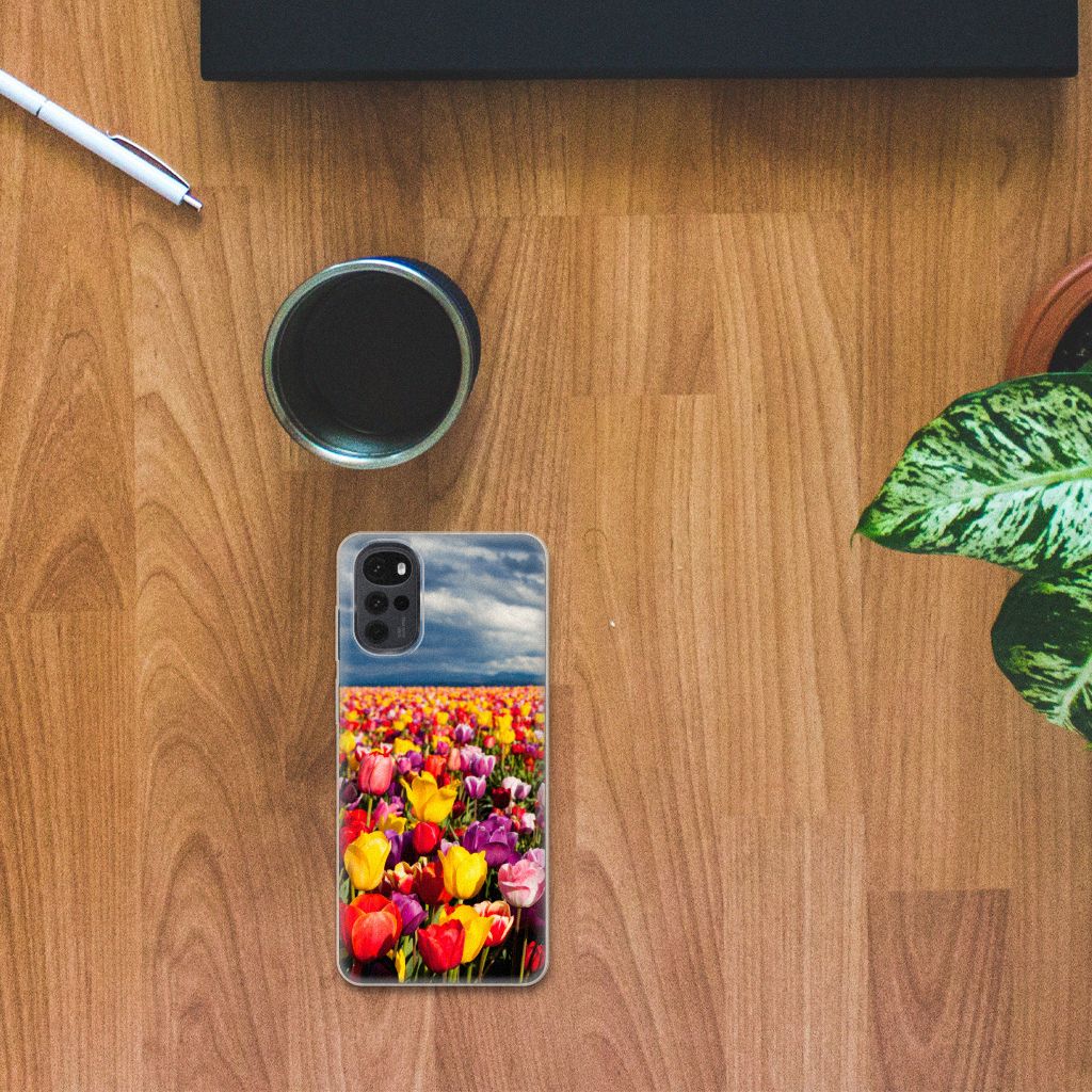 De tulp is een oer-Nederlandse bloem en heeft een lange geschiedenis. Deze Motorola Moto G22 TPU Case met Tulpen ziet er bijzonder kleurrijk uit. Dit fleurige smartphone hoesje geeft een bijzondere bescherming van jouw apparaat. Tulpen zijn ideaal voor een kleurrijk begin van het tuinseizoen. Iedereen wordt er vrolijk van om te zien hoe deze bloemen het voorjaar kleur geven en het begin van de warmere tijd van het jaar aankondigen. Dan kan het toch niet anders of jij wordt heel erg blij van deze tpu case met tulpen? Deze tpu case is zeer flexibel en past altijd in je broekzak. Het materiaal is zeer elastisch en onbreekbaar. De case wordt niet aan alle zijden bedrukt met tulpen. De randen blijven transparant. Je kunt ook zelf een tpu case maken met daarop jouw favoriete bloem.