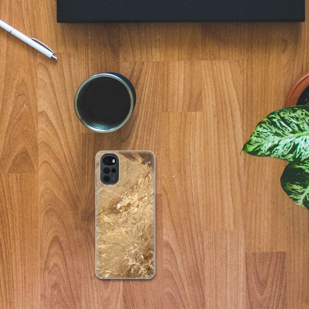 Dit design hoesje met Marmer in lichtbruine kleur is voor de artistiekelingen onder ons. De Grieken en Romeinen wisten het marmer al te waarderen door het in de bouw toe te passen. Naast het witte marmer zijn de diverse soorten marmer in een gevarieerde kleurensamenstelling te krijgen. We hebben verschillende mooie kleuren op design hoesjes gezet, zoals in dit geval het lichtbruine marmer. Dit is een Motorola Moto G22 TPU Siliconen Hoesje met marmer in lichtbruine kleur. Het marmer wordt bedrukt op de voorkant van een tpu case, die beschikt over opstaande randen aan de voorkant en heel goed combineert met een screenprotector van glas of van folie. Door de rijkdom aan kleuren en varianties in afwerking kunnen ontwerpers met marmer schitterende architectonische projecten realiseren. Wij hebben hetzelfde gedaan en onze ontwerper veel vrijheid geboden. Het resultaat zie je terug in deze tpu case met lichtbruin marmer, die jouw smartphone goed beschermt. De zijkanten van de case worden niet bedrukt met het lichtbruine marmer.