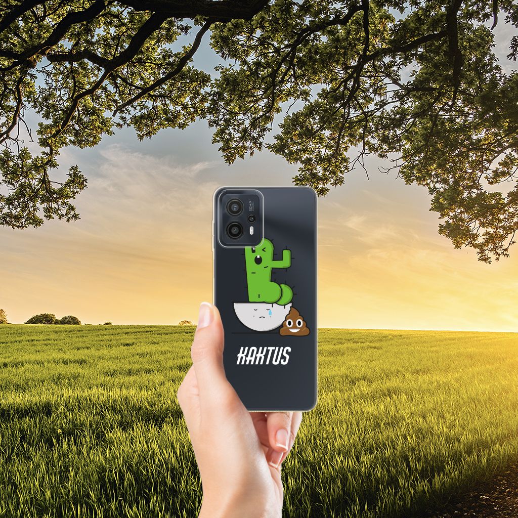 De cactus is leuk, hip en makkelijk te verzorgen. Maar wie denkt dat hij helemaal zonder aandacht kan, heeft het mis. Op dat moment komt hij in opstand, zoals op dit grappige design hoesje met cactus te zien is. Deze Telefoonhoesje met Naam met Cactus Poo design is van alle markten thuis. Het is een zeer veilig maar ook prachtig en praktisch hoesje. Dat bewijzen het flexibele en schokabsoberende materiaal en het lichte gewicht. De meeste cactussen komen uit Amerika. Daar groeien ze in hun natuurlijke omgeving, de woestijn en steppen. Maar ze groeien ook in tropische regenwouden. Dit geeft aan dat de cactus een plant is die zich makkelijk aanpast. Dat geldt dus helaas niet voor de cactus op dit tpu hoesje, maar jouw Motorola Moto G23 | G13 is wel goed beschermd. Valt de telefoon op de grond, dan beschermen de opstaande randen van de case het touchscreen. Alleen de bovenkant van dit hoesje wordt bedrukt met de geinige kaktus. De zijkanten van de TPU case blijven transparant.