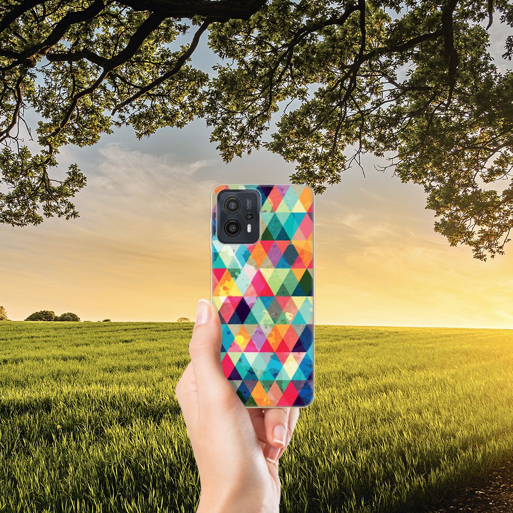 Van dit geruite design hoesje moet je een beetje houden. Maar als je het eenmaal in bezit hebt, ben je waarschijnlijk binnen no time verkocht. Het design heeft ruitjes in alle kleuren van de regenboog en door de grijze achtergrond kan het hoesje enigszins druk overkomen. Maar tegelijkertijd is dit de kracht van het hoesje. Met dit design hoesje Geruit zal je namelijk heel erg opvallen. Dit is voor veel vooral jonge smartphone gebruikers een belangrijk voordeel. Deze geruite print staat op een Motorola Moto G23 | G13 TPU bumper. Dit zeer flexibele smartphone hoesje heeft alle nodige uitsparingen en past altijd in je broekzak. De case is aan de bovenkant bedrukt, de randen blijven transparant.