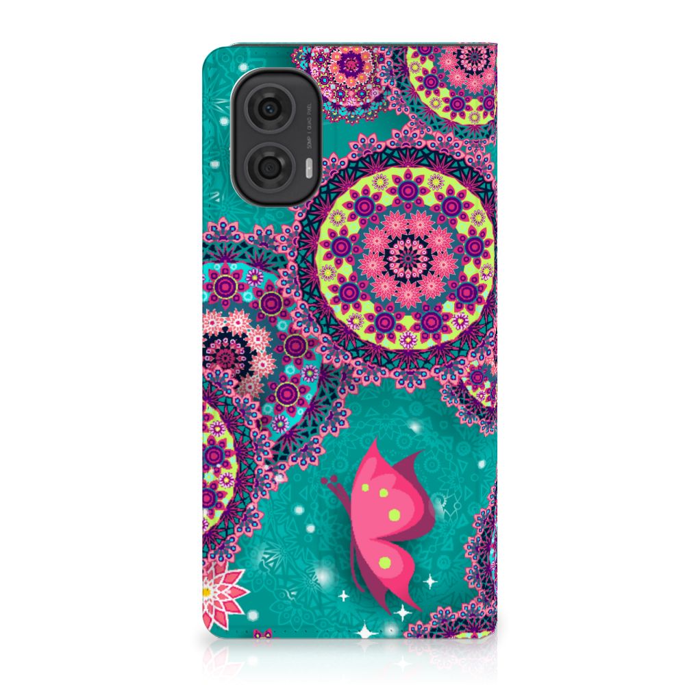 Deze opvallende Motorola Moto G24 | G04 | G24 Power Bookcase met Cirkels en Vlinders is een ware eyecatcher. De meeste vlinders hebben een onopvallende vleugelkleur en dat kun je van de soort op dit hoesje ook zeker wel zeggen. Wij kunnen deze opvallende vlinders en cirkels op een zeer handige stand case zetten. Deze hoesjes zijn zeer gewild. Met onze geavanceerde printer zetten we de print van opvallende vlinders en cirkels op alle zijden van het hoesje. De case met vlinders heeft aan de binnenkant een houder waarin je jouw creditcard of ander pasje kwijt kunt. De case heeft bovendien een handige standaard. Verder is je telefoon natuurlijk maximaal beschermd met deze stand case met print van opvallende en kleurrijke vlinders. De houder aan de binnenzijde van het design hoesje met opvallende vlinder print is van TPU.