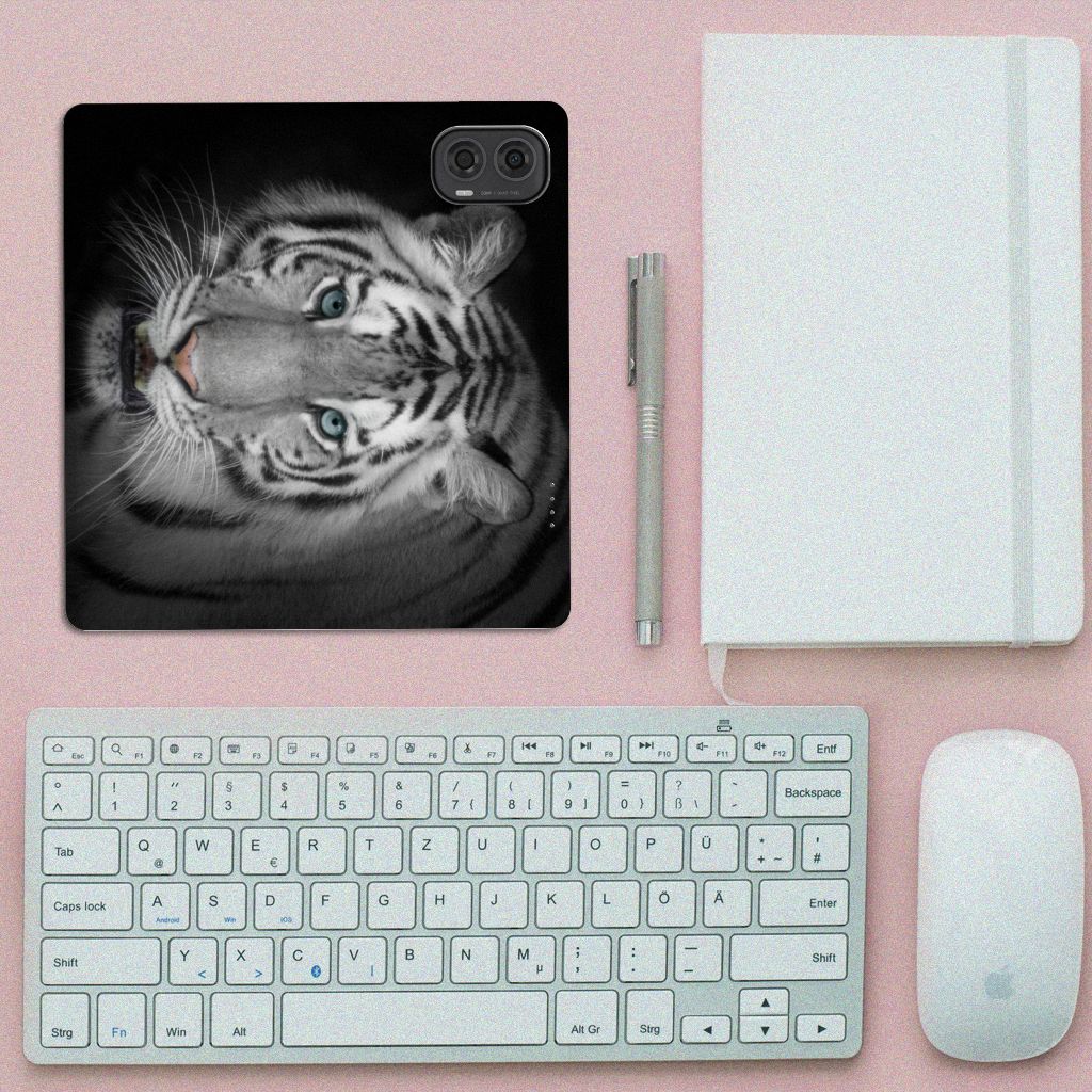 Omdat de Witte Tijger zo bijzonder is, zijn wij bereid deze voor zeer lage kosten op een stand case te zetten. Dit kunnen we zo goedkoop doen omdat we het drukwerk in eigen beheer doen. Witte tijgers leefden lange tijd in de bossen van India, Bangladesh, Nepal, Bhutan en China en kunnen wel 257 kilo wegen. Dit zwaargewicht kunnen we bedrukken op verschillende soorten hoesjes, zoals deze stand cases. Het Motorola Moto G24 | G04 | G24 Power Hoesje maken is van PU-leer (buitenzijde) en TPU (binnenzijde) en beschikt over een houder voor pasjes en briefgeld. Verder is dit hoesje met witte tijger print voorzien van magneten aan de binnenzijde. Tegenwoordig zijn witte tijgers alleen in gevangenschap te bewonderen. Jij zorgt voor de perfecte bescherming van je smartphone met dit design hoesje met witte tijger.