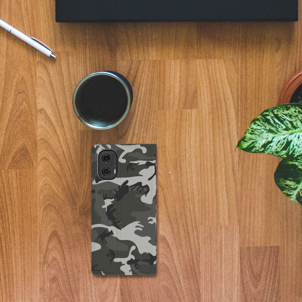 Heb je veel respect voor het leger, dan zal dit telefoonhoesje je zeker bevallen. De Motorola Moto G24 | G04 | G24 Power Hoesje met Magneet beschikt namelijk over een Army Light print. Camouflage kleding wordt vaak gedragen door mensen die zich graag willen mengen in of met hun omgeving. Dit donkere camouflage hoesje is er dan ook voornamelijk in kleuren die in de natuur voorkomen, zodat je één wordt met je achtergrond. Het design staat op een stand case. Deze stand case beschermt jouw telefoon aan alle kanten en beschikt over een 1 opbergvakje en een speciale standaard. Het donkere hoesje wordt afgesloten met een magneet aan de binnenzijde. De houder aan de binnenzijde is van TPU. Alle zijden van het hoesje worden bedrukt. Beschermt het leger volk en vaderland, dit hoesje in donkere camouflage kleuren zal jouw telefoon onder alle omstandigheden schadevrij houden. Met een leger hoesje in dit soort kleuren zal je niet zo snel opvallen, maar waarschijnlijk ben je daar ook niet naar op zoek. Wel is het een hele stoere stand case.