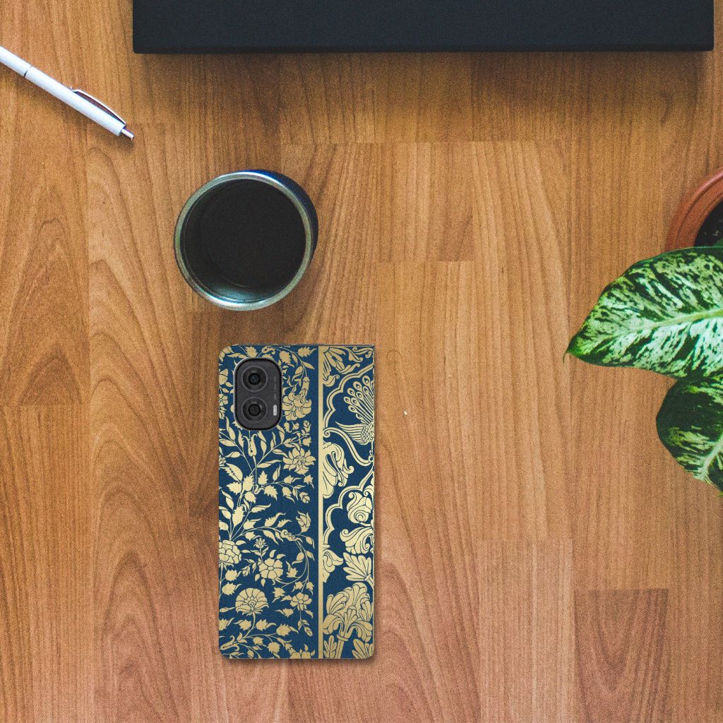 Dit koninklijke hoesje met Beige Flowers ziet er oogverblindend uit. De beige kleur geeft dit design hoesje een super fraai en chique uiterlijk. Je voelt jezelf de koning te rijk als je jouw telefoon beschermt met deze elegante case. De donkerblauwe achtergrond geeft dit design hoesje extra uitstraling en combineert goed met beige. Het hoesje ziet er zeer kostbaar uit, maar is erg goedkoop. Voor een zeer bescheiden bedrag ben je in het bezit van dit design hoesje. De case geeft jou en je smartphone extra status. Voor goedkope design hoesjes zit je goed bij B2C Telecom. Het design staat op een stand case. Deze case beschermt jouw Motorola Moto G24 | G04 | G24 Power aan alle kanten en beschikt over een 1 opbergvakje en een speciale standaard. Het Smart Cover wordt afgesloten met een magneet aan de binnenzijde. De houder aan de binnenzijde is van TPU. Alle zijden van de stand case worden bedrukt.