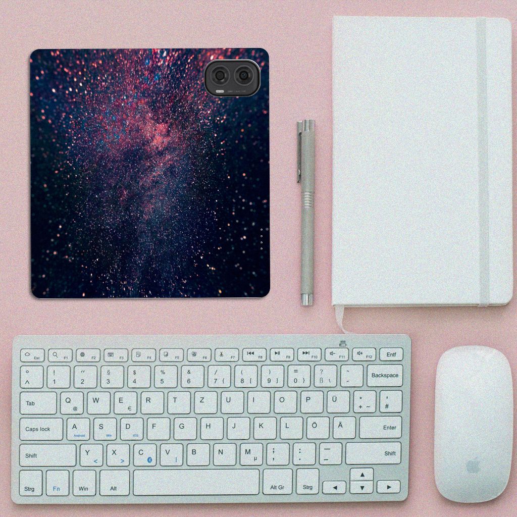 Je waant je in de zevende hemel met dit kunstzinnige, glitterachtige design hoesje met paarse en blauwe kleuren tegen een inktzwarte achtergrond. Het smartphone hoesje heeft ook een wat science fiction achtige allure. Met deze design Stars case zul je zeker opvallen. Als dit je bedoeling is, bestel dat snel dit waanzinnig mooie product voor je Motorola Moto G24 | G04 | G24 Power. Het telefoonhoesje is van alle gemakken voorzien en combineert een hele fraaie uitstraling met maximaal comfort. Bovendien is het gemaakt van zeer stevig en flexibel materiaal. Het unieke design, door B2C Telecom ontworpen, staat op een Stand Case. Deze case beschermt jouw telefoon aan alle kanten en beschikt over een 1 opbergvakje en een speciale standaard. Het hoesje wordt afgesloten met een magneet aan de binnenzijde. De houder aan de binnenzijde is van TPU.