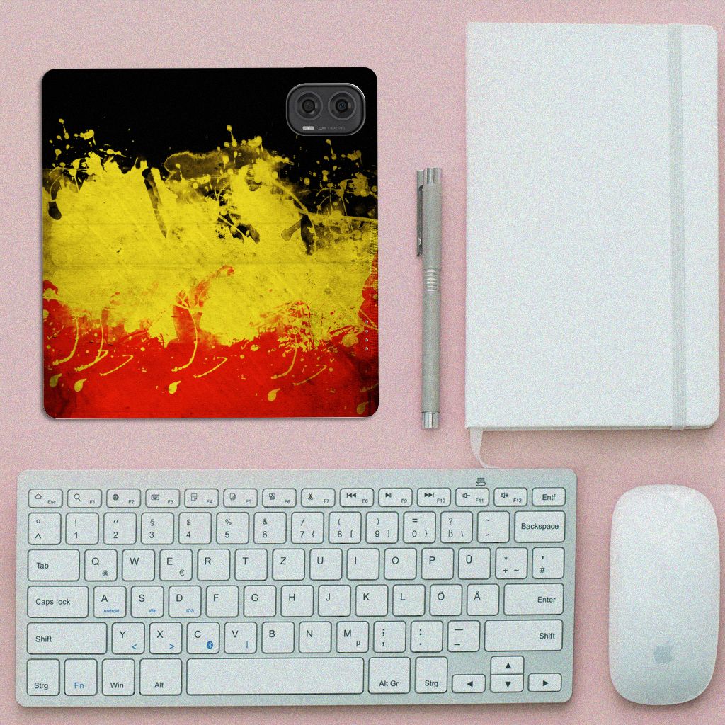 Dit design hoesje met Belgische kleuren van de vlag ziet er zeer fraai uit. De redenen om België te bezoeken zijn legio. Zo is Antwerpen een populaire stad om te winkelen, zijn Gent, Brussel en Brugge erg in trek als stedentripbestemming en kunnen natuur- en sportliefhebbers zich in grote delen van het land uitstekend vermaken. Wat België zo leuk maakt als bestemming is dat je direct het gevoel hebt in het buitenland te zijn, maar dat het toch heel vertrouwd aanvoelt. Ben jij liefhebber van dit gezellige land, dan zal dit design hoesje in Belgische kleuren je waarschijnlijk wel bevallen. Ze staan op een Motorola Moto G24 | G04 | G24 Power Standcase. Deze case beschermt jouw telefoon aan alle kanten en beschikt over een 1 opbergvakje en een speciale standaard. Het hoesje wordt afgesloten met een magneet aan de binnenzijde. De houder aan de binnenzijde is van TPU.