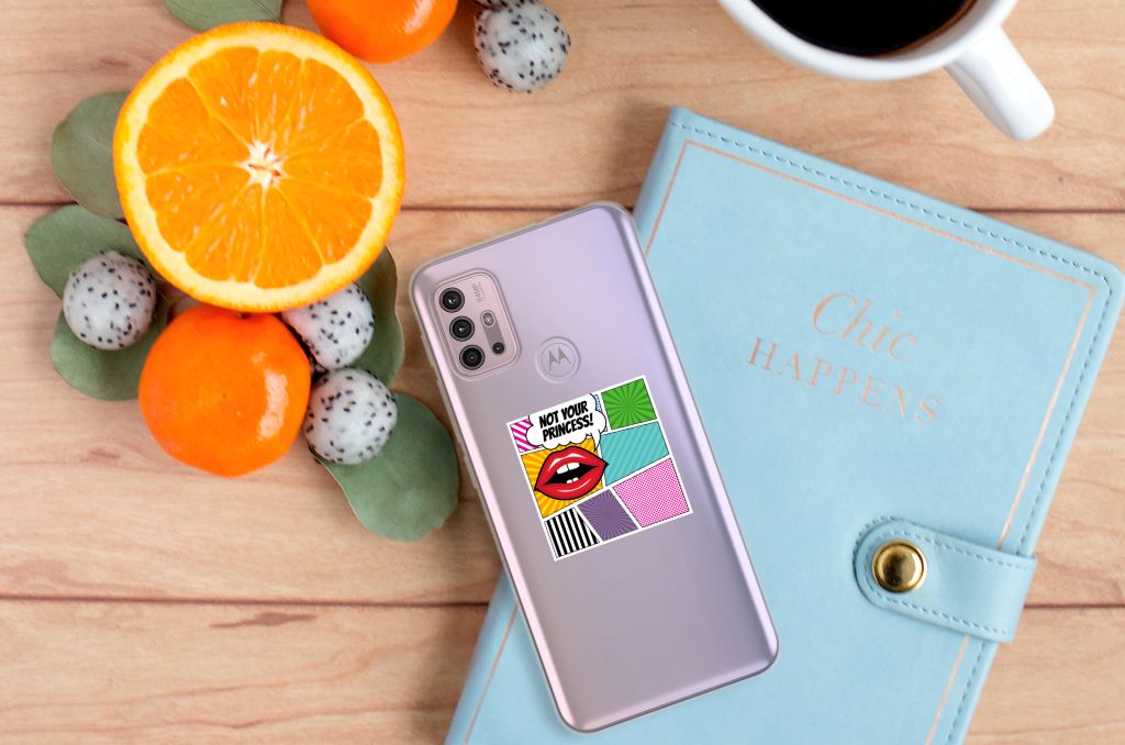 Ben je op zoek naar een uniek telefoonhoesje voor je Motorola Moto G30 | G10? Dan ben je bij B2C Telecom aan het juiste adres! Speciaal voor jou hebben we dit prachtige Popart Princess design in onze collectie hoesjes opgenomen. Het design wordt bedrukt op een Silicone Back Cover en is gemaakt van flexibel rubber. Het design wordt alleen aan de bovenkant van het hoesje bedrukt en de randen blijven transparant. Aan de zijkanten zijn uitsparingen gemaakt waardoor je met gemak alle knoppen en poorten kunt bedienen. Wij adviseren om dit hoesje in combinatie met een screenprotector te gebruiken voor een langere levensduur van je telefoon. Wil je dit design hoesje nog iets extra's geven? Voeg dan gratis je naam of een quote toe! Is dit design hoesje toch niet helemaal wat je zocht? Ontwerp dan zelf een hoesje in ons ontwerpprogramma
