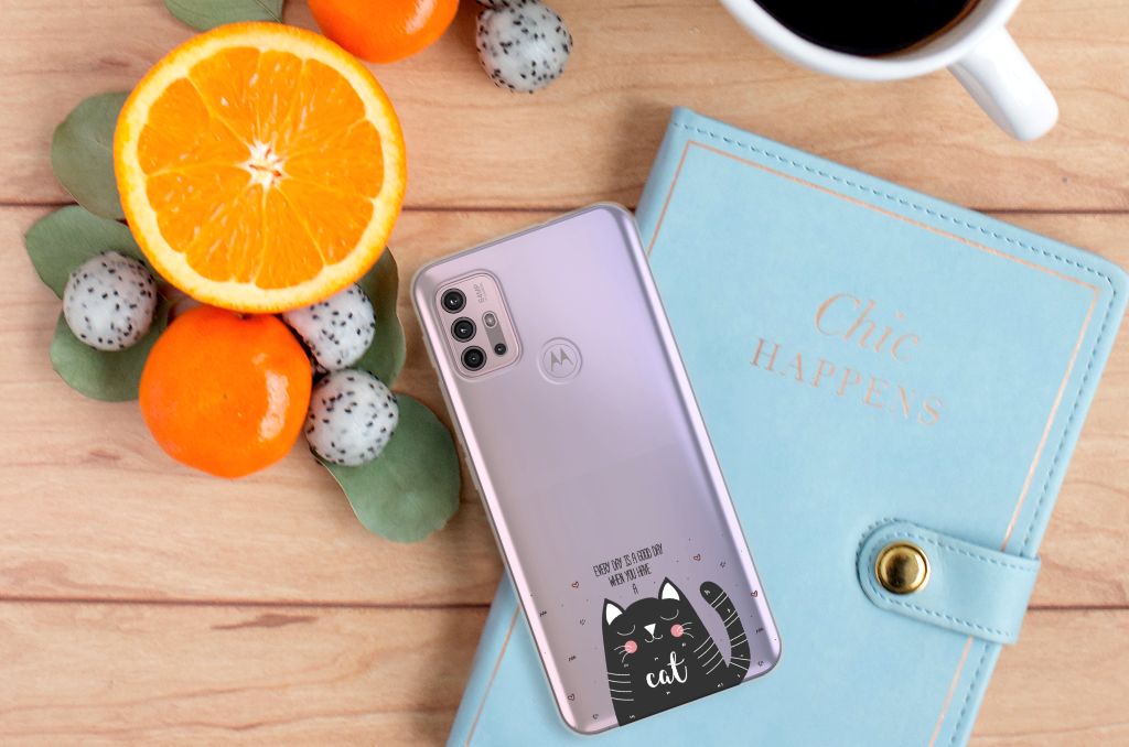 Ben je op zoek naar een uniek telefoonhoesje voor je Motorola Moto G30 | G10? Dan ben je bij B2C Telecom aan het juiste adres! Speciaal voor jou hebben we dit prachtige Cat Good Day design in onze collectie hoesjes opgenomen. Het design wordt bedrukt op een Telefoonhoesje met Naam en is gemaakt van flexibel rubber. Het design wordt alleen aan de bovenkant van het hoesje bedrukt en de randen blijven transparant. Aan de zijkanten zijn uitsparingen gemaakt waardoor je met gemak alle knoppen en poorten kunt bedienen. Wij adviseren om dit hoesje in combinatie met een screenprotector te gebruiken voor een langere levensduur van je telefoon. Wil je dit design hoesje nog iets extra's geven? Voeg dan gratis je naam of een quote toe! Is dit design hoesje toch niet helemaal wat je zocht? Ontwerp dan zelf een hoesje in ons ontwerpprogramma.