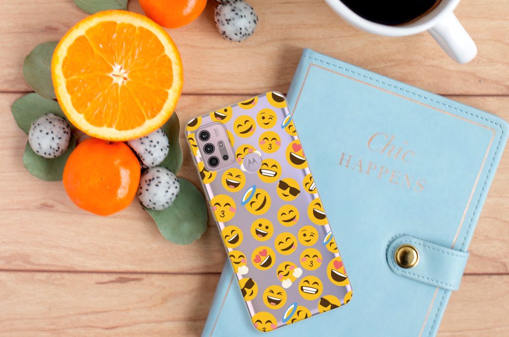 Je gebruikt ze waarschijnlijk dagelijks: emoji’s. Daarom hebben we besloten ze op een design hoesje te zetten. De kleurrijke, vaak gele emoticons maken chatberichten net wat spontaner. Dat hebben we allemaal te danken aan Japan, waar de emoji’s die we zo goed kennen vandaan komen. Ondertussen zijn er meer dan 1800! Deze passen natuurlijk niet allemaal op een Motorola Moto G30 | G10 TPU bumper, maar we hebben de meeste gebruikte exemplaren erop gezet. Deze tpu case is voorzien van opstaande randen zodat het touchscreen van je telefoon beter is beschermd. Super handig. Het TPU zelf is zeer flexibel en is op maat gemaakt. We gebruiken emoji’s vaak om complete woorden te vervangen. Dit smartphone hoesje zegt dan ook meer dan duizend woorden kunnen. De tpu case wordt alleen aan de bovenzijde bedrukt met emoji’s. De zijkanten van de case worden niet bedrukt en blijven transparant.