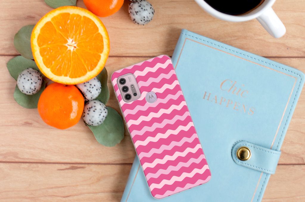 Dit design hoesje met roze golven is speciaal op maat gemaakt voor jouw telefoon. We hebben verschillende kleurstellingen gebruikt in het design, zodat de case er spannend en leuk uitziet. Dit roze hoesje met verschillende soorten golven ziet er opwindend uit. Het Motorola Moto G30 | G10 TPU bumper wordt in ons eigen magazijn bedrukt, vandaar dat we de kosten zeer laag kunnen houden. Wij kunnen het duurzame hoesje met Waves Pink zeer snel leveren. Heb jij altijd al een design hoesje met verschillende soorten roze willen hebben? Deze TPU case met roze golven wordt alleen aan de bovenkant bedrukt en is zeer flexibel. De randen van het hoesje met licht roze golven blijven transparant en worden niet bedrukt. Met dit roze hoesje past jouw telefoon altijd in je broekzak.