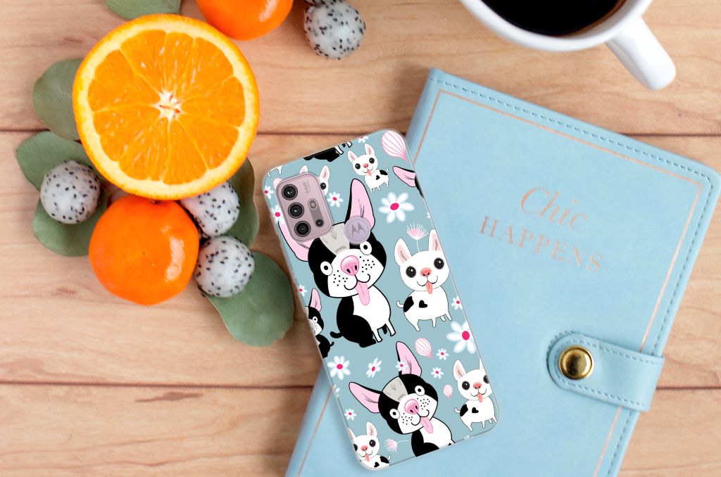 De Hondjes op deze Motorola Moto G30 | G10 TPU Hoesje ogen zeer aandoenlijk. Deze hondjes met zwart-witte vacht willen jou zelfs bijna in je armen springen, zo blij zijn ze dat ze op dit design zijn gezet. Het tpu hoesje is een zeer flexibele smartphone case. Dit hoesje met zwarte en witte hondjes is niet alleen zeer praktisch vanwege de opstaande randen aan de voorzijde, maar beschermt je smartphone ook nog eens zeer goed. Op de bovenkant van de tpu case, die altijd in je broekzak past, staan de vrolijke hondjes. Veel Nederlanders hebben momenteel een hond als huisdier. Honden zijn dus erg populair. Net als deze tpu case, die wel eens het ideale cadeautje zou kunnen zijn voor jouw vriendin of dochter. De case blijft aan de zijkanten doorzichtig.