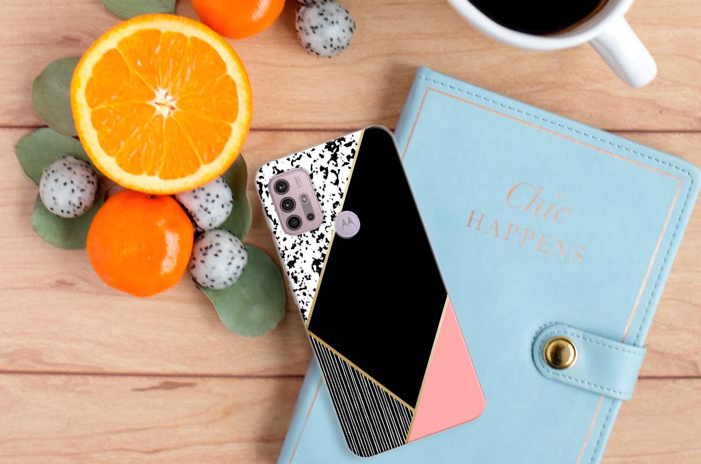 Aan design TPU Hoesje met mooie vormen en figuren geen gebrek in onze uitgebreide collectie. Wat dacht je van dit design TPU Hoesje Motorola Moto G30 | G10 met zwart roze vormen. Deze tpu case met roze, zwarte en witte vlakken is zo’n beetje de meest flexibele siliconen case die er bestaat. Een Motorola Moto G30 | G10 TPU Hoesje met print zorgt voor een gedeeltelijke bescherming van je smartphone en wordt aan de bovenkant bedrukt met roze, zwarte en witte vlakken. De randen van de case blijven transparant.
