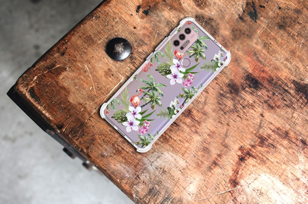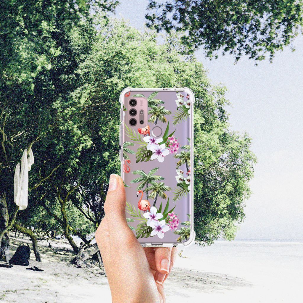 Ben je op zoek naar een uniek telefoonhoesje voor je Motorola Moto G30 | G20 | G10? Dan ben je bij B2C Telecom aan het juiste adres! Speciaal voor jou hebben we dit prachtige Flamingo Palms design in onze collectie hoesjes opgenomen. Het design wordt bedrukt op een Case Anti-shock en is gemaakt van flexibel rubber. Het hoesje is perfect voor de actieve smartphonegebruiker door de opstaande randen/hoeken. Denk aan mensen die veel sporten, reizen of wandelen en net iets meer zekerheid willen als het op hun geliefde telefoon aankomt. Het design wordt alleen aan de bovenkant van het hoesje bedrukt en de randen blijven transparant. Aan de zijkanten zijn uitsparingen gemaakt waardoor je met gemak alle knoppen en poorten kunt bedienen. Wij adviseren om dit hoesje in combinatie met een screenprotector te gebruiken voor een langere levensduur van je telefoon. Wil je dit hoesje nog iets extra's geven? Voeg dan gratis je naam of een quote toe! Is dit design hoesje toch niet helemaal wat je zocht? Ontwerp dan zelf een hoesje in ons ontwerpprogramma.