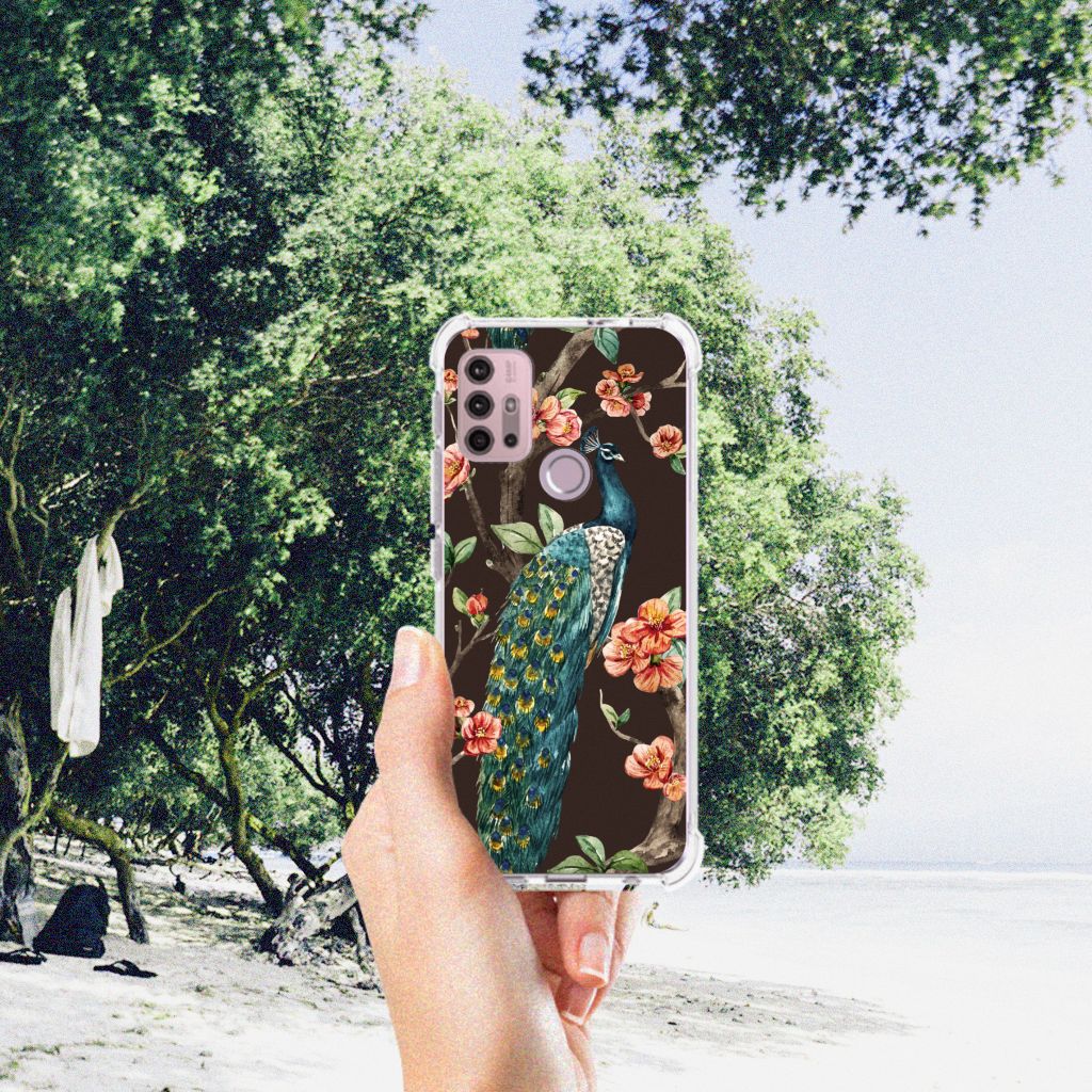 Ben je op zoek naar een uniek telefoonhoesje voor je Motorola Moto G30 | G20 | G10? Dan ben je bij B2C Telecom aan het juiste adres! Speciaal voor jou hebben we dit prachtige Pauw met Bloemen in onze collectie hoesjes opgenomen. Het design wordt bedrukt op een Case Anti-shock en is gemaakt van flexibel rubber. Het hoesje is perfect voor de actieve smartphonegebruiker door de opstaande randen/hoeken. Denk aan mensen die veel sporten, reizen of wandelen en net iets meer zekerheid willen als het op hun geliefde telefoon aankomt. Het design wordt alleen aan de bovenkant van het hoesje bedrukt en de randen blijven transparant. Aan de zijkanten zijn uitsparingen gemaakt waardoor je met gemak alle knoppen en poorten kunt bedienen. Wij adviseren om dit hoesje in combinatie met een screenprotector te gebruiken voor een langere levensduur van je telefoon. Wil je dit hoesje nog iets extra's geven? Voeg dan gratis je naam of een quote toe! Is dit design hoesje toch niet helemaal wat je zocht? Ontwerp dan zelf een hoesje in ons ontwerpprogramma.