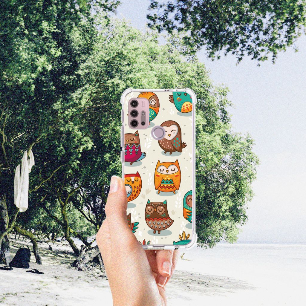 Ben je op zoek naar een uniek telefoonhoesje voor je Motorola Moto G30 | G20 | G10? Dan ben je bij B2C Telecom aan het juiste adres! Speciaal voor jou hebben we dit prachtige Vrolijke Uilen design in onze collectie hoesjes opgenomen. Het design wordt bedrukt op een Case Anti-shock en is gemaakt van flexibel rubber. Het hoesje is perfect voor de actieve smartphonegebruiker door de opstaande randen/hoeken. Denk aan mensen die veel sporten, reizen of wandelen en net iets meer zekerheid willen als het op hun geliefde telefoon aankomt. Het design wordt alleen aan de bovenkant van het hoesje bedrukt en de randen blijven transparant. Aan de zijkanten zijn uitsparingen gemaakt waardoor je met gemak alle knoppen en poorten kunt bedienen. Wij adviseren om dit hoesje in combinatie met een screenprotector te gebruiken voor een langere levensduur van je telefoon. Wil je dit hoesje nog iets extra's geven? Voeg dan gratis je naam of een quote toe! Is dit design hoesje toch niet helemaal wat je zocht? Ontwerp dan zelf een hoesje in ons ontwerpprogramma.