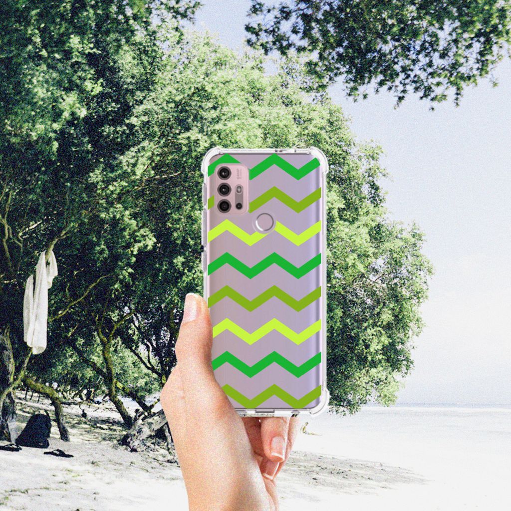 Ben je op zoek naar een uniek telefoonhoesje voor je Motorola Moto G30 | G20 | G10? Dan ben je bij B2C Telecom aan het juiste adres! Speciaal voor jou hebben we dit prachtige Zigzag Groen design in onze collectie hoesjes opgenomen. Het design wordt bedrukt op een Doorzichtige Silicone Hoesje en is gemaakt van flexibel rubber. Het hoesje is perfect voor de actieve smartphonegebruiker door de opstaande randen/hoeken. Denk aan mensen die veel sporten, reizen of wandelen en net iets meer zekerheid willen als het op hun geliefde telefoon aankomt. Het design wordt alleen aan de bovenkant van het hoesje bedrukt en de randen blijven transparant. Aan de zijkanten zijn uitsparingen gemaakt waardoor je met gemak alle knoppen en poorten kunt bedienen. Wij adviseren om dit hoesje in combinatie met een screenprotector te gebruiken voor een langere levensduur van je telefoon. Wil je dit hoesje nog iets extra's geven? Voeg dan gratis je naam of een quote toe! Is dit design hoesje toch niet helemaal wat je zocht? Ontwerp dan zelf een hoesje in ons ontwerpprogramma.