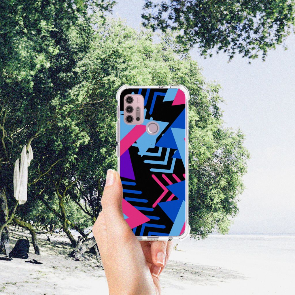 Ben je op zoek naar een uniek telefoonhoesje voor je Motorola Moto G30 | G20 | G10? Dan ben je bij B2C Telecom aan het juiste adres! Speciaal voor jou hebben we dit prachtige Funky Triangle design in onze collectie hoesjes opgenomen. Het design wordt bedrukt op een Shockproof Case en is gemaakt van flexibel rubber. Het hoesje is perfect voor de actieve smartphonegebruiker door de opstaande randen/hoeken. Denk aan mensen die veel sporten, reizen of wandelen en net iets meer zekerheid willen als het op hun geliefde telefoon aankomt. Het design wordt alleen aan de bovenkant van het hoesje bedrukt en de randen blijven transparant. Aan de zijkanten zijn uitsparingen gemaakt waardoor je met gemak alle knoppen en poorten kunt bedienen. Wij adviseren om dit hoesje in combinatie met een screenprotector te gebruiken voor een langere levensduur van je telefoon. Wil je dit hoesje nog iets extra's geven? Voeg dan gratis je naam of een quote toe! Is dit design hoesje toch niet helemaal wat je zocht? Ontwerp dan zelf een hoesje in ons ontwerpprogramma.