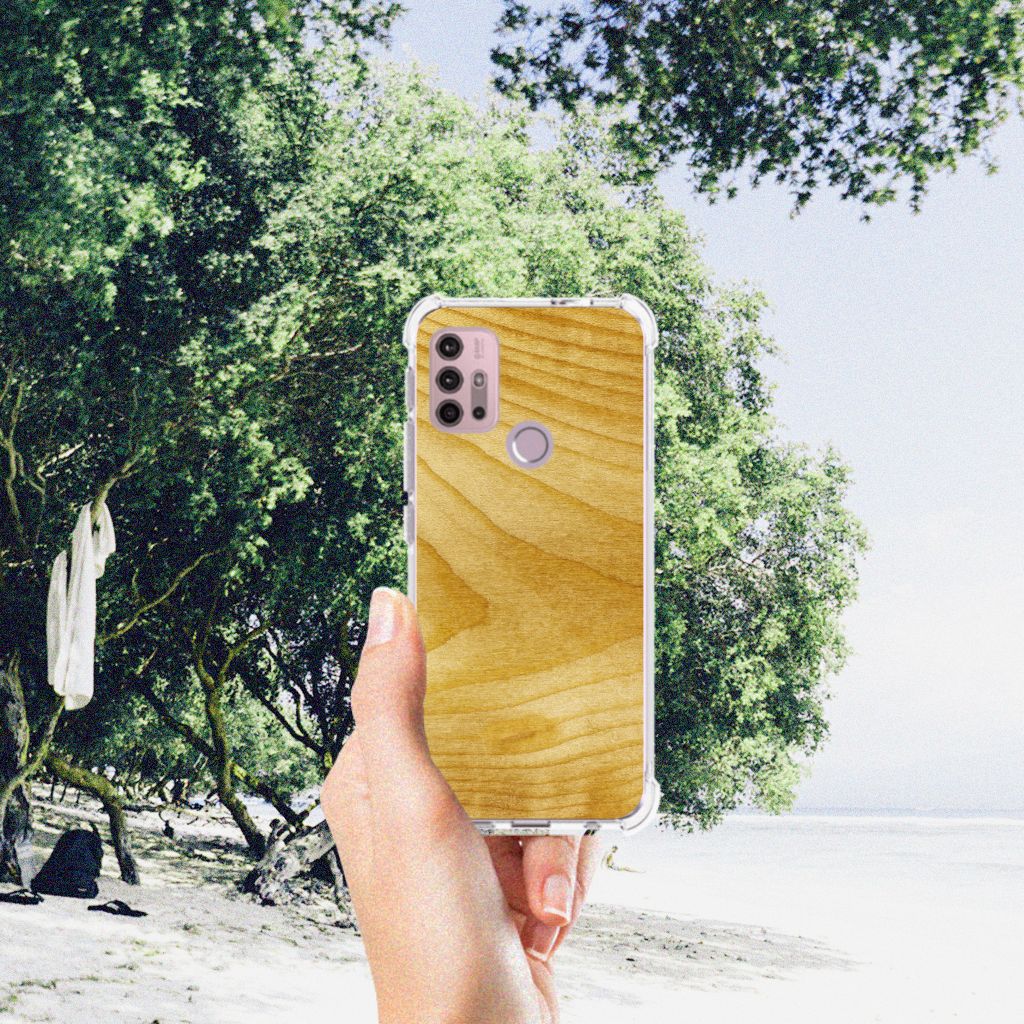 Ben je op zoek naar een uniek telefoonhoesje voor je Motorola Moto G30 | G20 | G10? Dan ben je bij B2C Telecom aan het juiste adres! Speciaal voor jou hebben we dit prachtige Licht Hout design in onze collectie hoesjes opgenomen. Het design wordt bedrukt op een Stevig Telefoonhoesje en is gemaakt van flexibel rubber. Het hoesje is perfect voor de actieve smartphonegebruiker door de opstaande randen/hoeken. Denk aan mensen die veel sporten, reizen of wandelen en net iets meer zekerheid willen als het op hun geliefde telefoon aankomt. Het design wordt alleen aan de bovenkant van het hoesje bedrukt en de randen blijven transparant. Aan de zijkanten zijn uitsparingen gemaakt waardoor je met gemak alle knoppen en poorten kunt bedienen. Wij adviseren om dit hoesje in combinatie met een screenprotector te gebruiken voor een langere levensduur van je telefoon. Wil je dit hoesje nog iets extra's geven? Voeg dan gratis je naam of een quote toe! Is dit design hoesje toch niet helemaal wat je zocht? Ontwerp dan zelf een hoesje in ons ontwerpprogramma.
