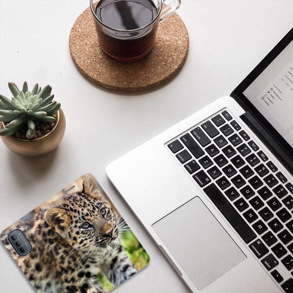 De luipaard is een grote, gespierde katachtige met korte, krachtige poten en een lange staart. Aangezien het op dit hoesje een baby luipaard betreft, zijn deze eigenschappen nog niet volledig tot wasdom gekomen. De kop van de luipaard is breed en een beetje rond van vorm met kleine, ronde oren. De snuit is middelgroot, met krachtige kaken en lange snorharen. De vacht van een luipaard is bedekt met veel zwarte vlekken. Kies je voor dit design hoesje, dan zal er van vlekken op jouw smartphone nooit en te nimmer sprake zijn. Het stoere en tegelijkertijd aandoenlijke design staat op een stand case. Een Motorola Moto G31 | G41 Hoesje maken beschermt jouw telefoon aan alle kanten en beschikt over een 1 opbergvakje en een speciale standaard. Het hoesje wordt afgesloten met een magneet aan de binnenzijde. De houder aan de binnenzijde is van TPU.