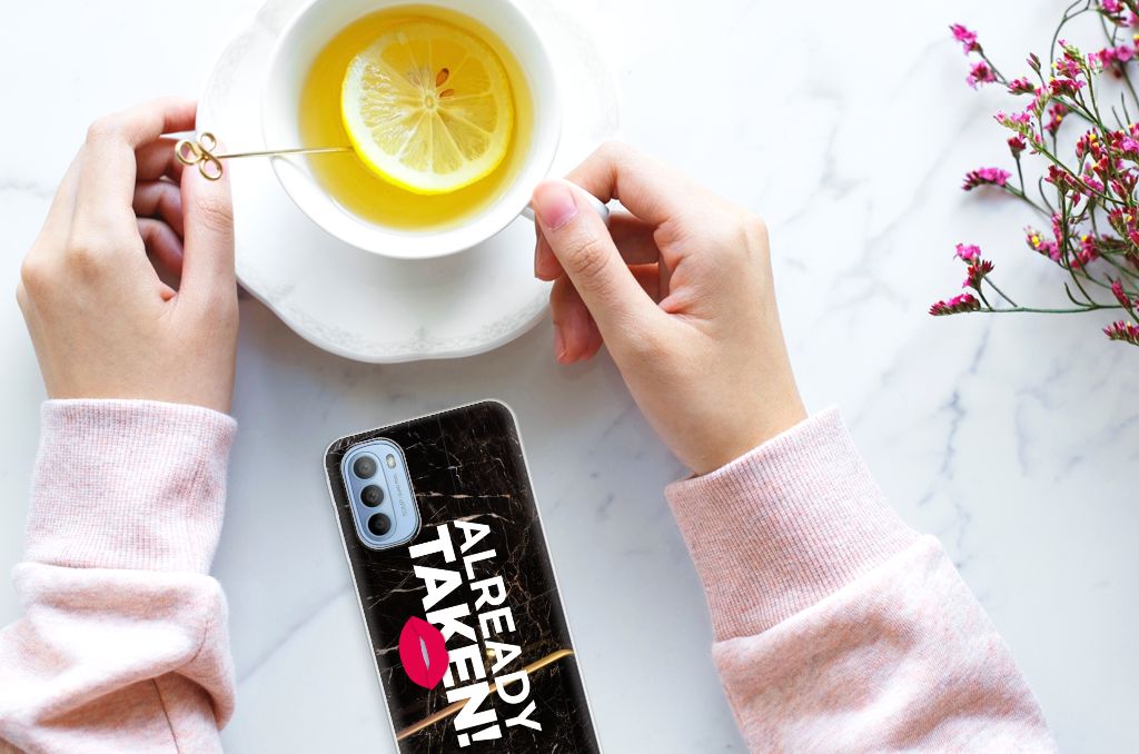 Met deze Motorola Moto G31 | G41 Siliconen hoesje met naam met Already Taken Black tekst maak je duidelijk dat jouw smartphone een kostbaar bezit is, waar je zeer lang over wilt beschikken. Je telefoon neem je waarschijnlijk vaak ter hand, dus dan zal de boodschap als je over dit hoesje beschikt zeker weten overkomen. De TPU case wordt alleen aan de bovenkant bedrukt en is zeer flexibel. De randen van het hoesje blijven transparant. Wil je een eigen tekst op je hoesje zetten? Dit kan ook, met onze Phone Case Designer. Deze unieke ontwerpmodule is ook geschikt om het design uit te breiden met foto’s, effecten en patronen.
