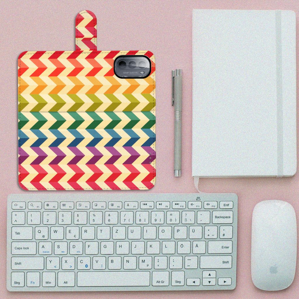 Ben je op zoek naar een uniek telefoonhoesje voor je Motorola Moto G31 | G41? Dan ben je bij B2C Telecom aan het juiste adres! Speciaal voor jou hebben we dit prachtige Zigzag Color design in onze collectie hoesjes opgenomen. Het design wordt bedrukt op een Telefoon Hoesje en heeft twee vakjes voor pasjes en een groter vakje voor briefgeld. Alle zijdes van het hoesje worden bedrukt, hoe uniek is dat? Het hoesje wordt afgesloten met een sluit lipje aan de voorkant. Wil je dit design hoesje nog iets extra's geven? Voeg dan gratis je naam of een quote toe! Is dit design hoesje toch niet helemaal wat je zocht? Ontwerp dan zelf een hoesje in ons ontwerpprogramma.