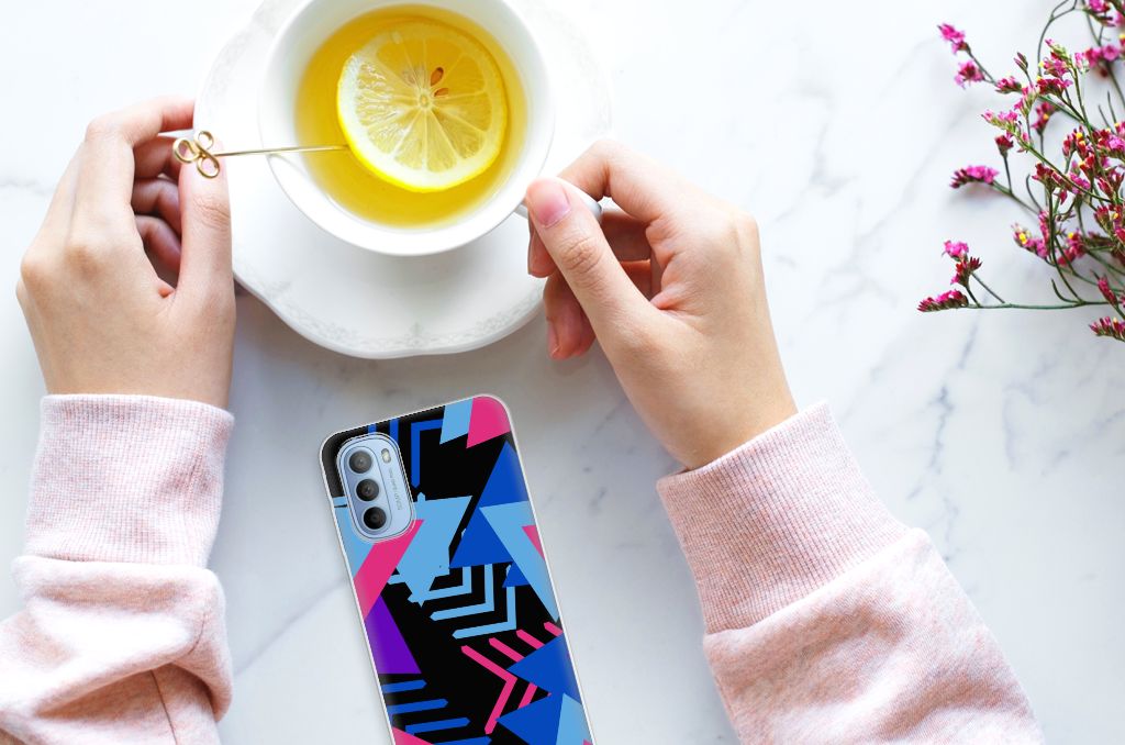 Dit fraaie hoesje met het design Funky Triangle is alles behalve eenvoudig en sober. Dat komt goed uit, want je hebt natuurlijk ook geen doorsnee telefoon gekocht. Mocht je dat wel hebben gedaan, dan wordt hij meteen speciaal als je een Motorola Moto G31 | G41 TPU Hoesje koopt voor een spotprijsje. Een ding is zeker: opvallen ga je beslist met dit hoesje met paarse, roze en blauwe driehoeken. Jij zult in je element zijn met dit design hoesje met paarse, roze en blauwe driehoeken, omdat het er schitterend uitziet en jouw telefoon zeer goed beschermt. Het smartphonehoesje beschermt jouw telefoon vooral aan de zijkanten en achterkant en wordt alleen aan de bovenzijde bedrukt met paarse, roze en blauwe driehoeken. De zijkanten blijven doorzichtig. De paarse, roze en blauwe driehoeken maken de case helemaal af.