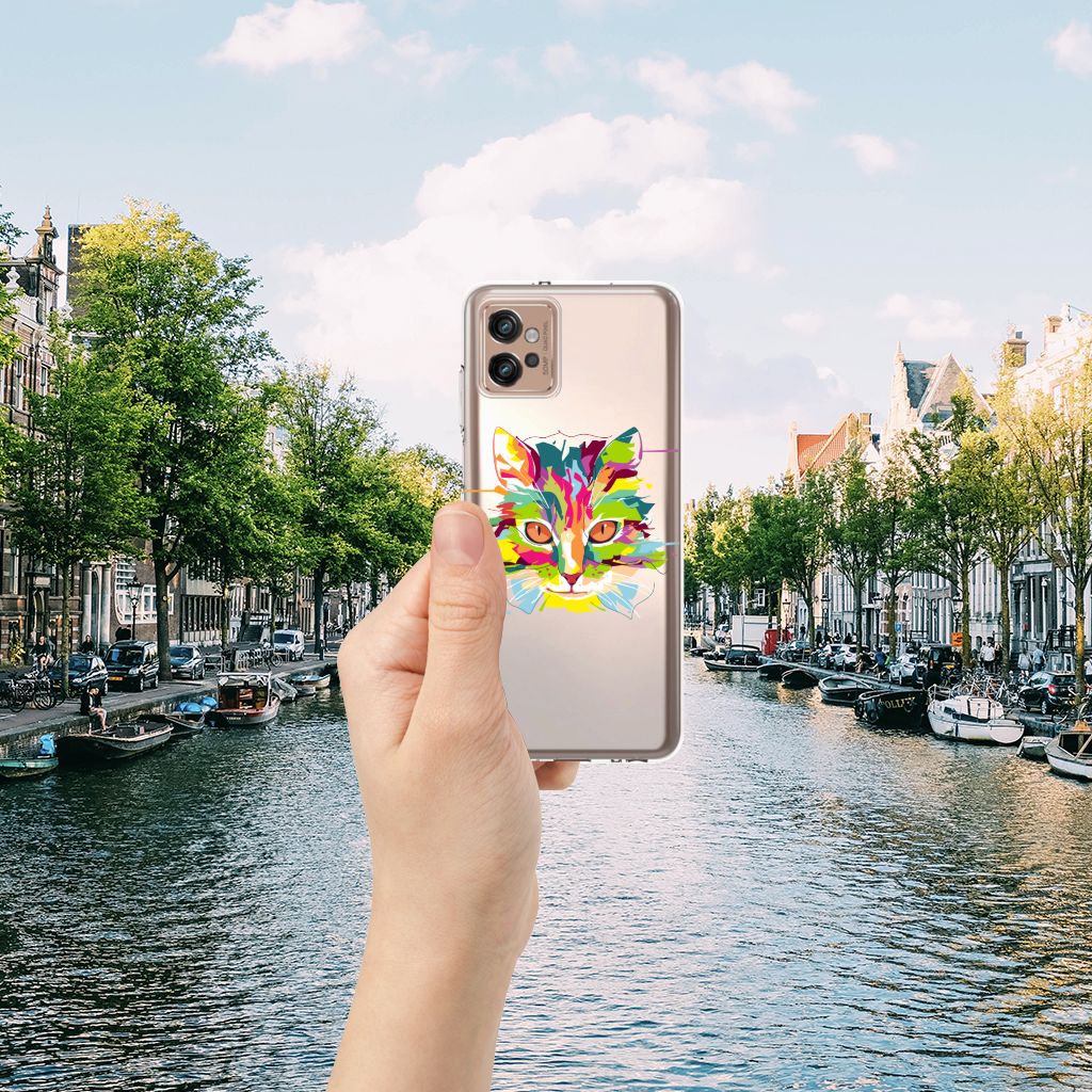 Ben je op zoek naar een uniek telefoonhoesje voor je Motorola Moto G32? Dan ben je bij B2C Telecom aan het juiste adres! Speciaal voor jou hebben we dit prachtige Cat Color design in onze collectie hoesjes opgenomen. Het design wordt bedrukt op een Telefoonhoesje met Naam en is gemaakt van flexibel rubber. Het design wordt alleen aan de bovenkant van het hoesje bedrukt en de randen blijven transparant. Aan de zijkanten zijn uitsparingen gemaakt waardoor je met gemak alle knoppen en poorten kunt bedienen. Wij adviseren om dit hoesje in combinatie met een screenprotector te gebruiken voor een langere levensduur van je telefoon. Wil je dit design hoesje nog iets extra's geven? Voeg dan gratis je naam of een quote toe! Is dit design hoesje toch niet helemaal wat je zocht? Ontwerp dan zelf een hoesje in ons ontwerpprogramma.