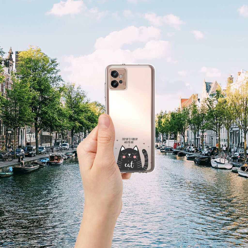 Ben je op zoek naar een uniek telefoonhoesje voor je Motorola Moto G32? Dan ben je bij B2C Telecom aan het juiste adres! Speciaal voor jou hebben we dit prachtige Cat Good Day design in onze collectie hoesjes opgenomen. Het design wordt bedrukt op een Telefoonhoesje met Naam en is gemaakt van flexibel rubber. Het design wordt alleen aan de bovenkant van het hoesje bedrukt en de randen blijven transparant. Aan de zijkanten zijn uitsparingen gemaakt waardoor je met gemak alle knoppen en poorten kunt bedienen. Wij adviseren om dit hoesje in combinatie met een screenprotector te gebruiken voor een langere levensduur van je telefoon. Wil je dit design hoesje nog iets extra's geven? Voeg dan gratis je naam of een quote toe! Is dit design hoesje toch niet helemaal wat je zocht? Ontwerp dan zelf een hoesje in ons ontwerpprogramma.