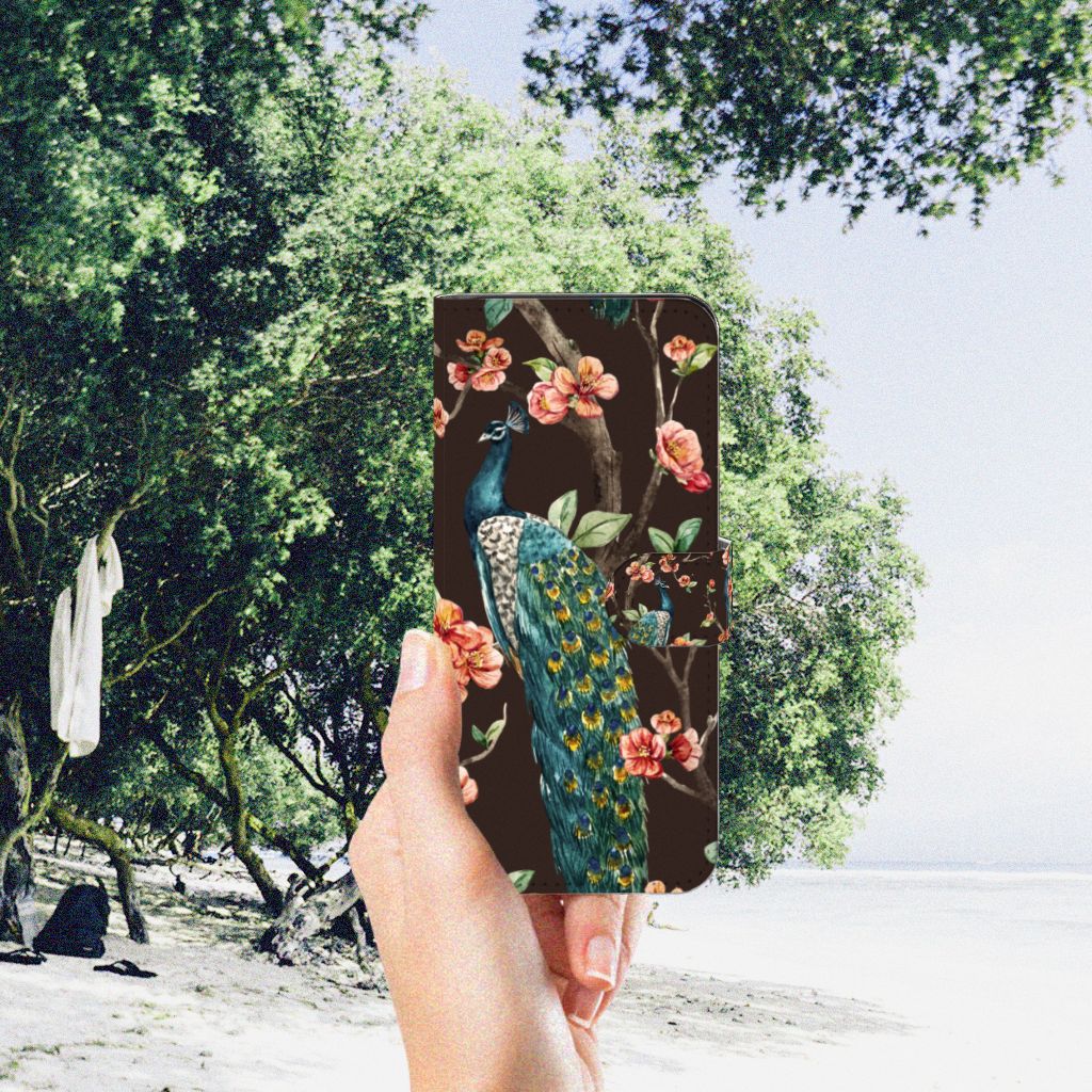 Motorola Moto G32 Telefoonhoesje sluit met magnetisch lipje Pauw | Bloemen