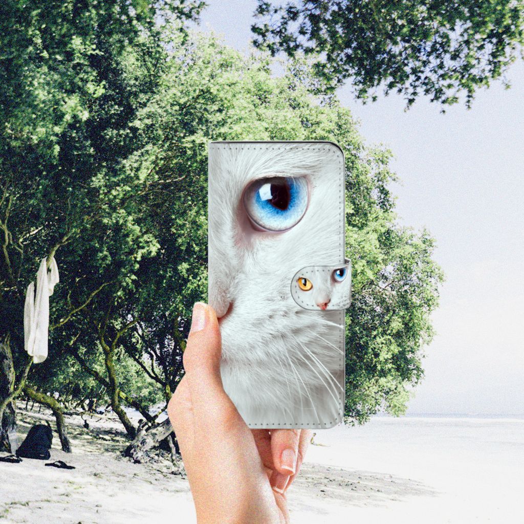Motorola Moto G32 Telefoonhoesje met magnetisch lipje als sluiting Witte Kat