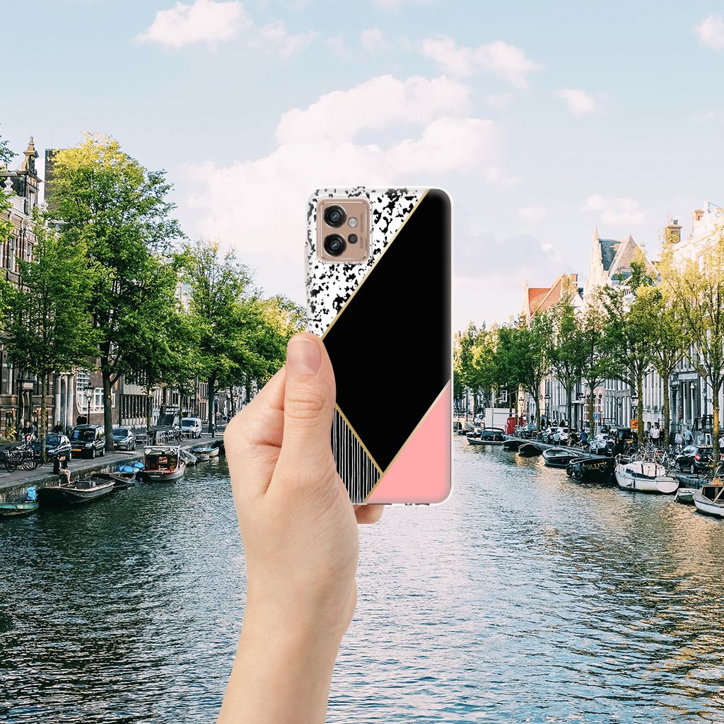 TPU Hoesje Motorola Moto G32 Zwart Roze Vormen Design