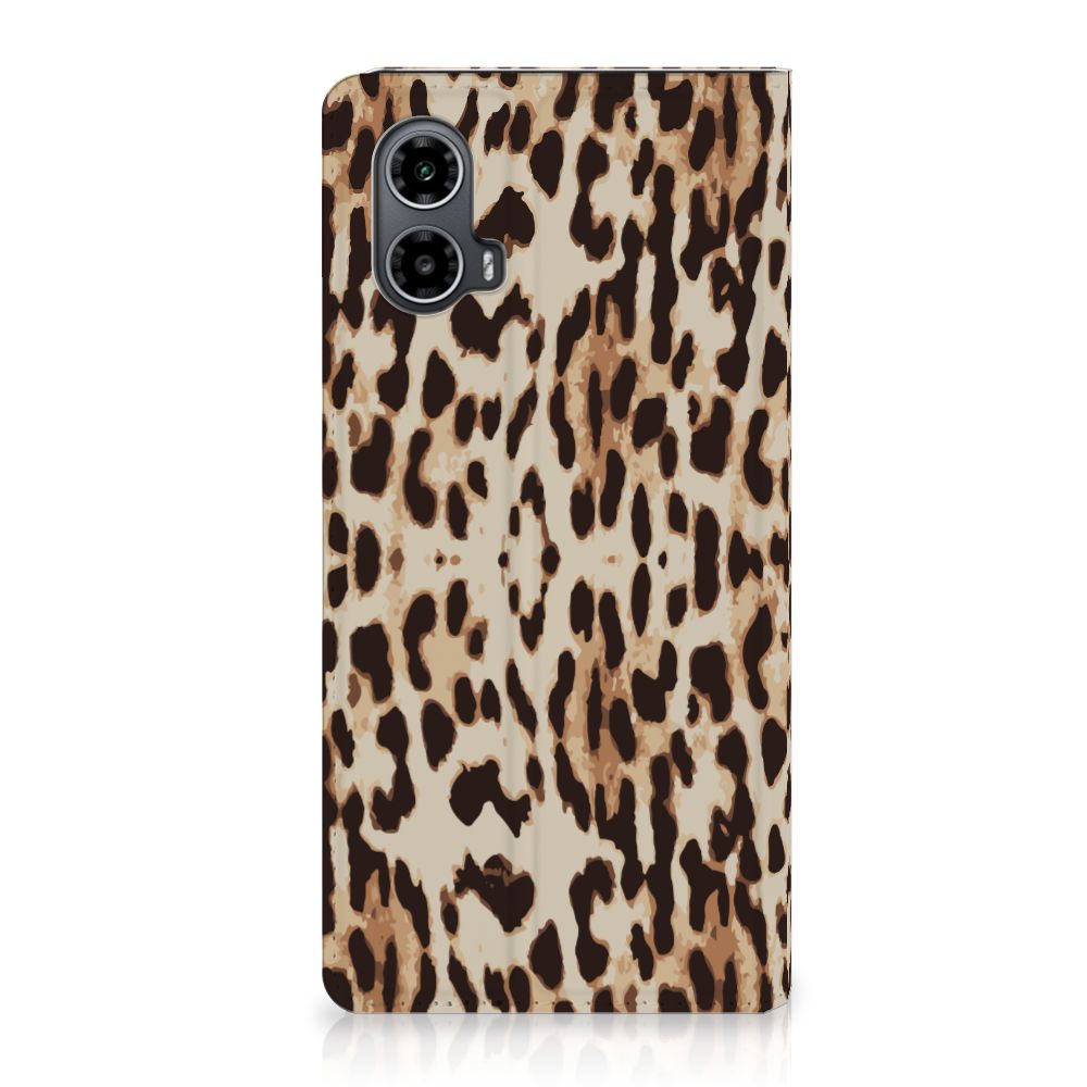 Het luipaard wordt ook wel een panter genoemd en is een sluwe kat. De bruingele vacht met een patroon van rozetachtige vlekken geeft een goede schutkleur. Dit zie je ook op een fraaie manier afgebeeld op dit super stoere hoesje met luipaardprint. Mensen die indruk willen maken kopen deze stand case met Leopard print. Een Motorola Moto G34 Hoesje maken is van alle markten thuis. Het is praktisch – vanwege onder meer het opbergvakje en de magnetische sluiting aan de binnenzijde – maar beschermt jouw smartphone tevens op een geweldige manier. Het luipaard is sterk en behendig en wellicht typeert jou dat ook wel. Dan past dit hoesje met luipaard perfect bij jou. De houder van TPU aan de binnenzijde is minstens zo sterk als het luipaard. Jouw telefoon is perfect beschermd en de case heeft tevens een standaard.