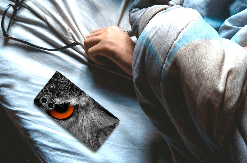 Deze Motorola Moto G34 Hoesje maken met uil is iets voor de nachtbrakers onder ons. De uil is bij uitstek een vogel die in de nachtelijke uren actief is. Ben jij ook iemand die dan tot leven komt, dan is deze stand case met uil echt iets voor jou. Als je tot in de late uurtjes op stap bent, komt het goed uit dat jouw smartphone aan alle kanten goed is beschermd met deze stand case met uil. De case met uil heeft een magnetische sluiting aan de binnenkant, waardoor de hoes niet openklapt als die uit je handen valt. Jouw creditcard of pinpas heb je als het goed is veilig opgeborgen in het vakje aan de binnenzijde. De houder aan de binnenzijde van de case met print van uil is van het flexibele TPU. De wat stoerdere types hebben veel baat bij deze stand case met uilen in felle kleuren.