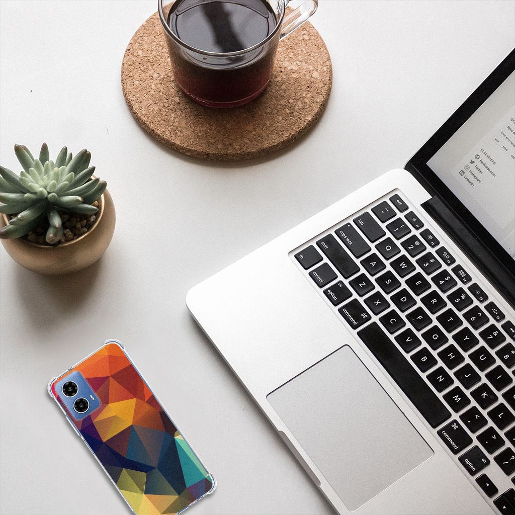 Ben je op zoek naar een uniek telefoonhoesje voor je Motorola Moto G34? Dan ben je bij B2C Telecom aan het juiste adres! Speciaal voor jou hebben we dit prachtige Polygon Color design in onze collectie hoesjes opgenomen. Het design wordt bedrukt op een Shockproof Case en is gemaakt van flexibel rubber. Het hoesje is perfect voor de actieve smartphonegebruiker door de opstaande randen/hoeken. Denk aan mensen die veel sporten, reizen of wandelen en net iets meer zekerheid willen als het op hun geliefde telefoon aankomt. Het design wordt alleen aan de bovenkant van het hoesje bedrukt en de randen blijven transparant. Aan de zijkanten zijn uitsparingen gemaakt waardoor je met gemak alle knoppen en poorten kunt bedienen. Wij adviseren om dit hoesje in combinatie met een screenprotector te gebruiken voor een langere levensduur van je telefoon. Wil je dit hoesje nog iets extra's geven? Voeg dan gratis je naam of een quote toe! Is dit design hoesje toch niet helemaal wat je zocht? Ontwerp dan zelf een hoesje in ons ontwerpprogramma.