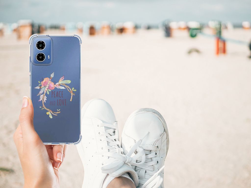 Ben je op zoek naar een uniek telefoonhoesje voor je Motorola Moto G34? Dan ben je bij B2C Telecom aan het juiste adres! Speciaal voor jou hebben we dit prachtige Boho Text design in onze collectie hoesjes opgenomen. Het design wordt bedrukt op een Stevig Bumper Hoesje en is gemaakt van flexibel rubber. Het hoesje is perfect voor de actieve smartphonegebruiker door de opstaande randen/hoeken. Denk aan mensen die veel sporten, reizen of wandelen en net iets meer zekerheid willen als het op hun geliefde telefoon aankomt. Het design wordt alleen aan de bovenkant van het hoesje bedrukt en de randen blijven transparant. Aan de zijkanten zijn uitsparingen gemaakt waardoor je met gemak alle knoppen en poorten kunt bedienen. Wij adviseren om dit hoesje in combinatie met een screenprotector te gebruiken voor een langere levensduur van je telefoon. Wil je dit hoesje nog iets extra's geven? Voeg dan gratis je naam of een quote toe! Is dit design hoesje toch niet helemaal wat je zocht? Ontwerp dan zelf een hoesje in ons ontwerpprogramma.