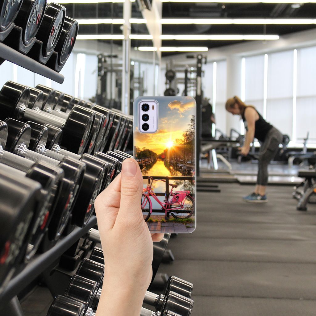Amsterdam is meer dan ooit een toeristische trekpleister. Een bezoek aan de hoofdstad is niet compleet als je niet aanlegt bij de Amsterdamse Grachten. Ze zijn een symbool van de stad en hebben een enorme culturele en historische waarde. Daarom kunnen ze natuurlijk niet ontbreken in onze collectie design hoesjes. Dit schitterende design hoesje met Amsterdamse grachten tref je enkel en alleen aan bij B2C Telecom. De ondergaande zon en de fleurige en fraaie bloempakketten zorgen voor een prachtig totaalplaatje. Amsterdam is wereldberoemd om haar prachtige grachten uit de zeventiende eeuw. Dit smartphone hoesje is hier een eerbetoon aan. Het design staat op een TPU case. Dit Motorola Moto G42 Siliconen Back Cover wordt alleen aan de bovenkant bedrukt en is zeer flexibel. De randen van het hoesje blijven transparant.