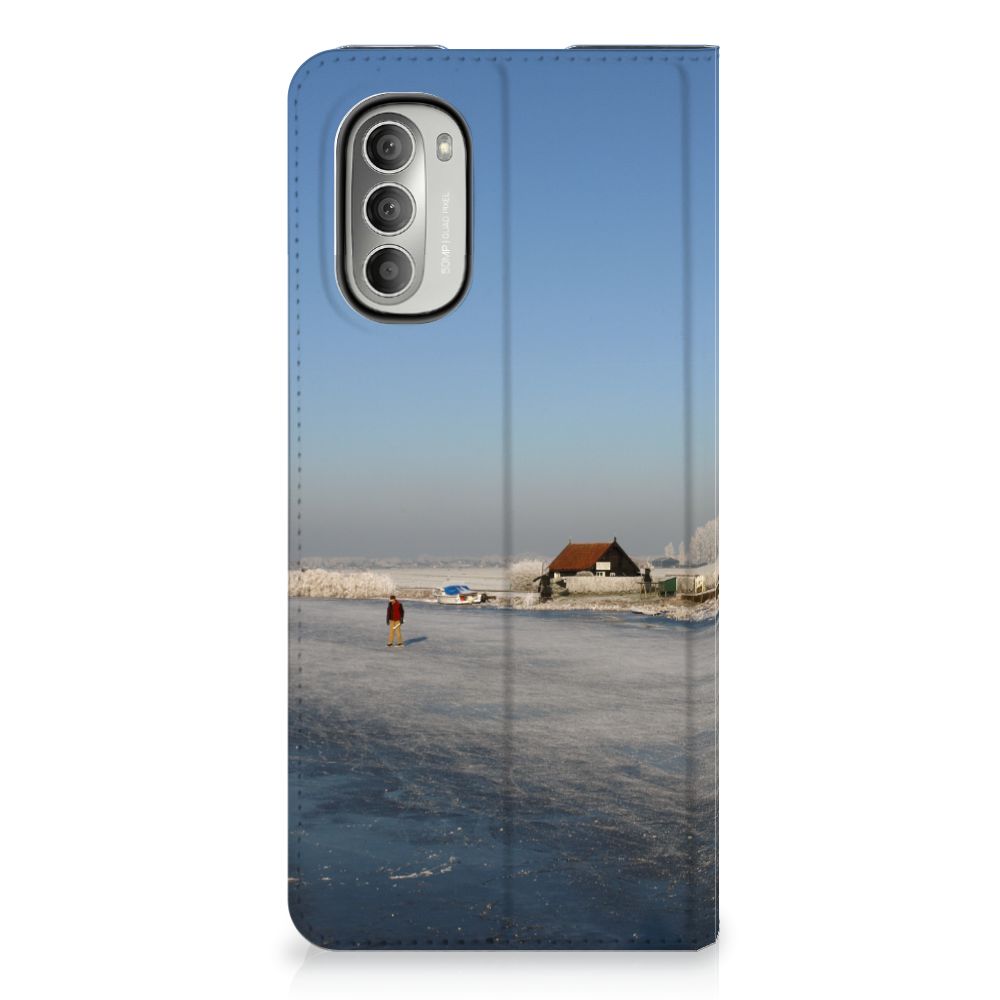 Deze mooie Motorola Moto G51 5G Book Cover met schaatsers is een typisch Hollands product. Schaatsen is een van de oudste Nederlandse volkssporten en wordt van jongs af aan geleerd. Hoewel schaatsen ook in andere landen van het noordelijk halfrond in trek is, met name in Scandinavië (Zweden, Finland, Noorwegen), blinken Nederlanders er pas echt in uit. Mocht jij met dit hoesje met schaatsers in het buitenland aankomen zetten, dan is het meteen duidelijk waar je vandaan komt. Deze stand case is perfect op maat gemaakt en heeft een vakje voor een pasje of briefgeld. Daarnaast is de magneet aan de binnenkant zeer handig. Alle zijden van de case worden bedrukt met schaatsers en de houder aan de binnenzijde is van tpu. Dit is erg flexibel materiaal. De case heeft ook een standaard.