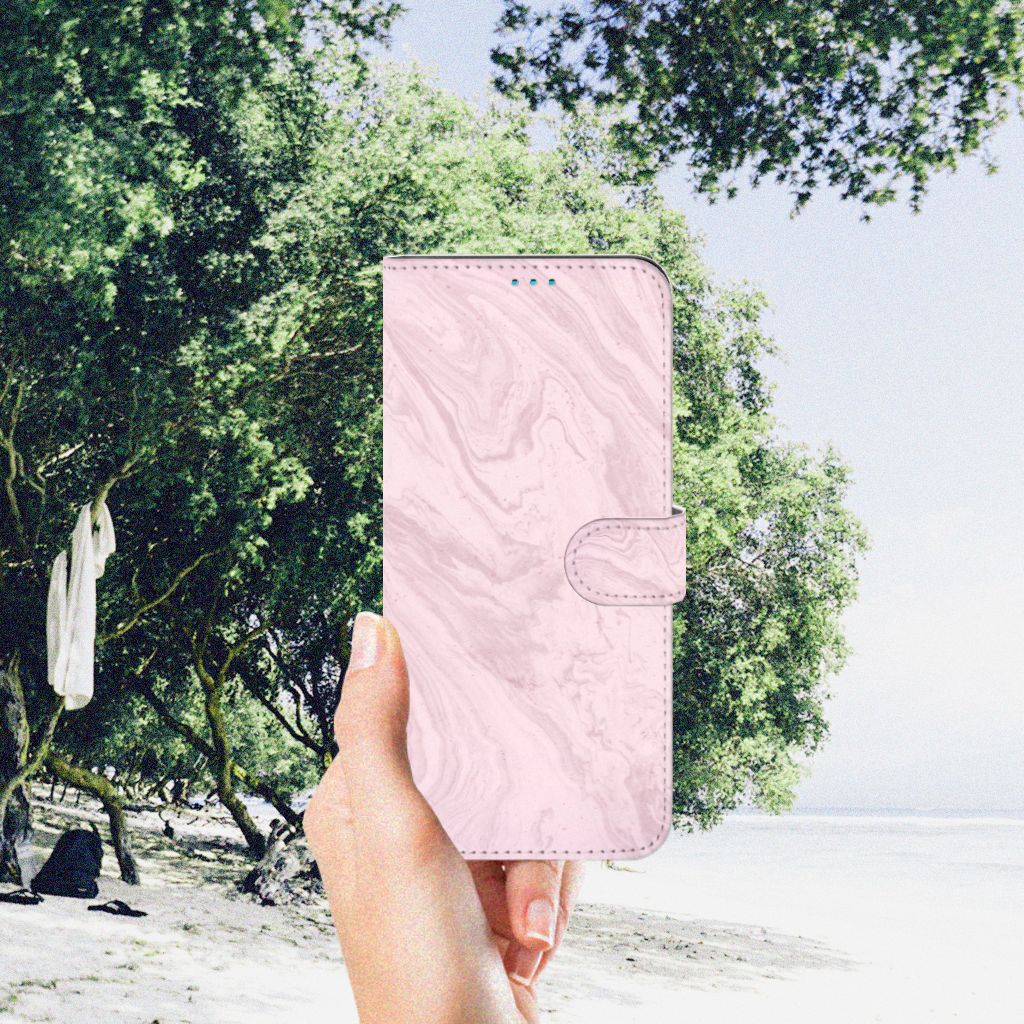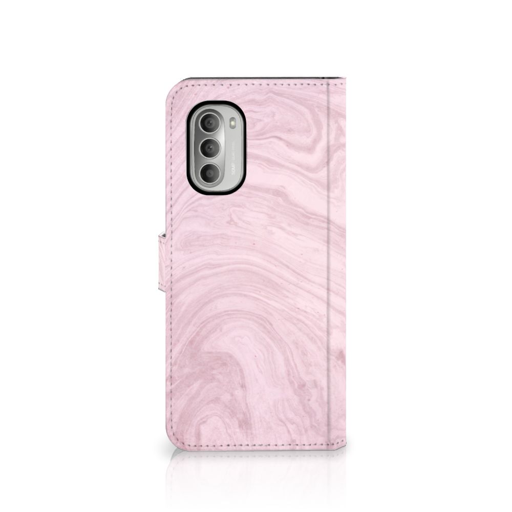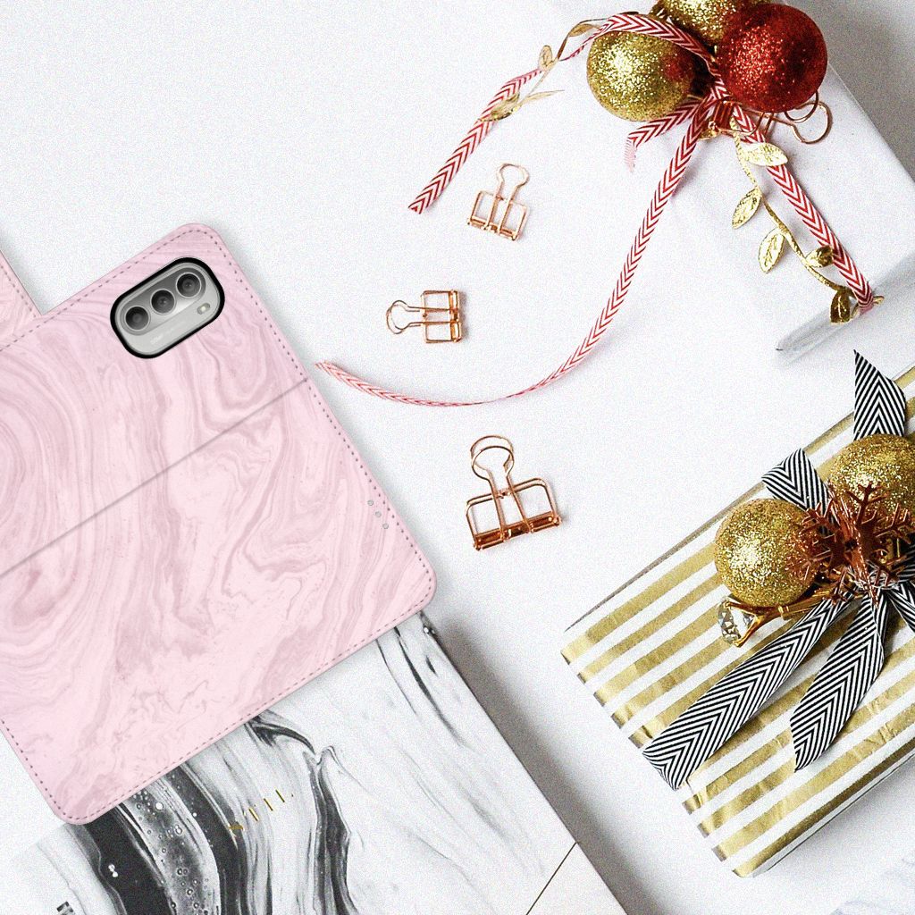 Motorola Moto G51 5G Bookcase met magnetische sluitclip Marble Pink