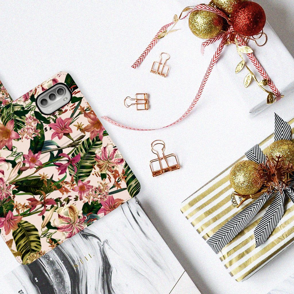 Motorola Moto G51 5G Hoesje met ruimte voor pasjes Flowers