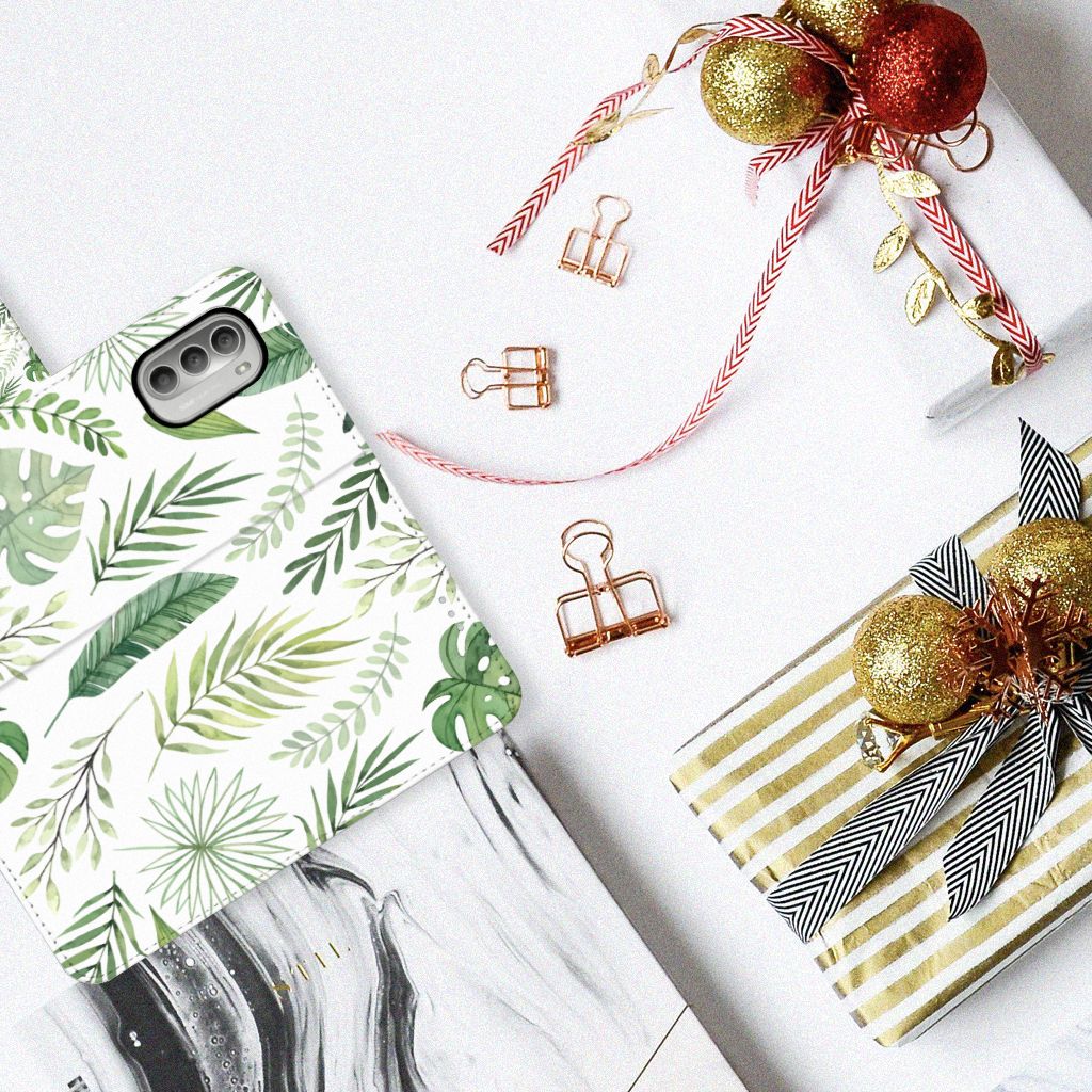 Motorola Moto G51 5G Hoesje met ruimte voor pasjes Leaves