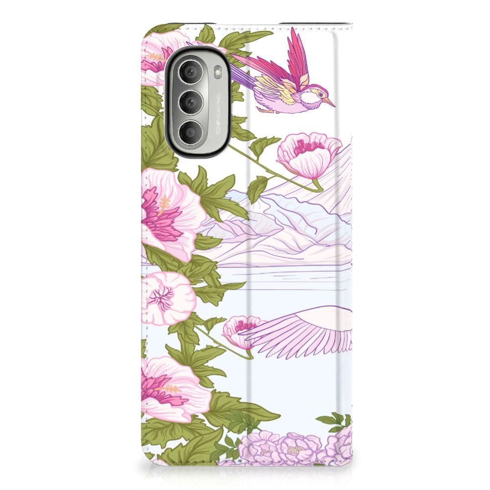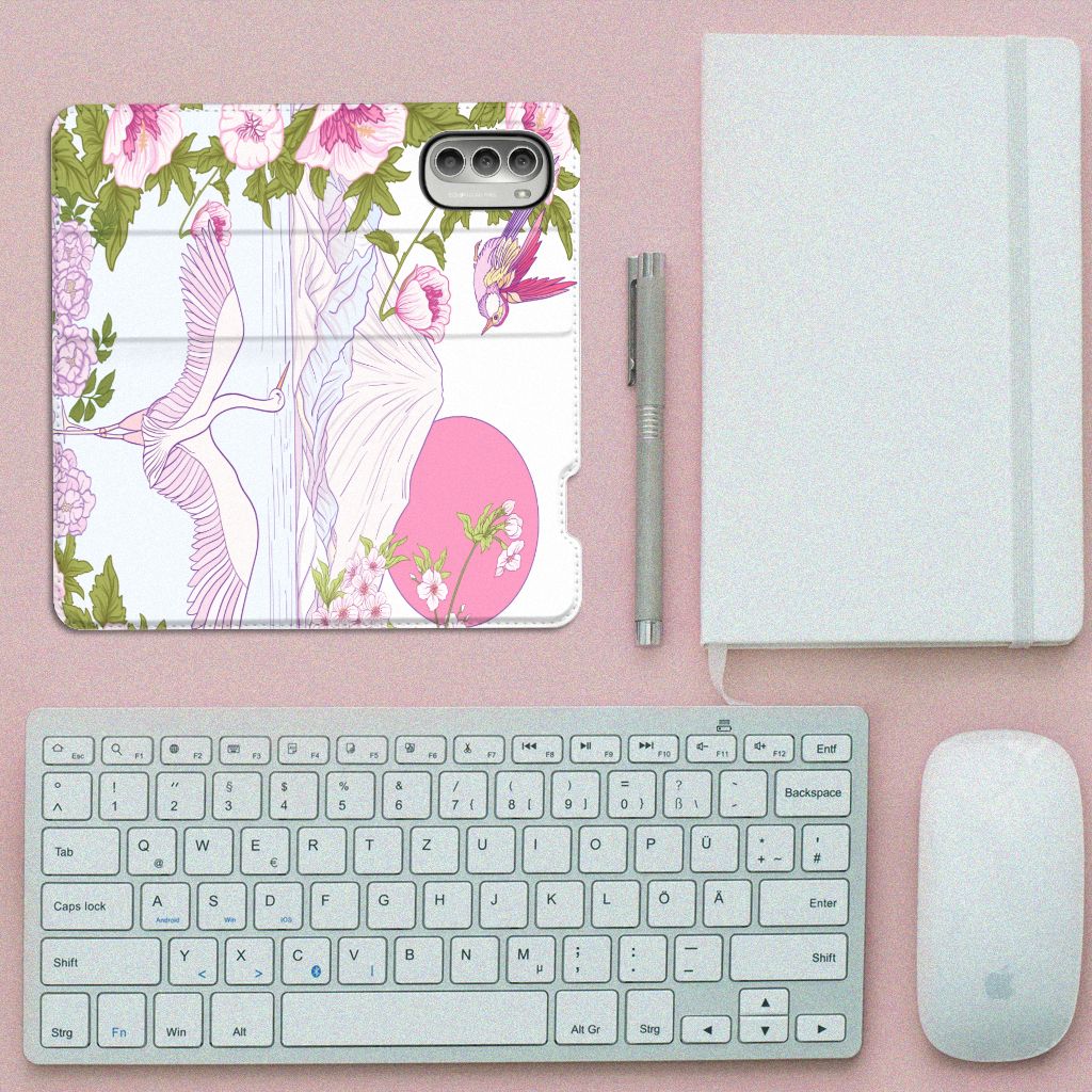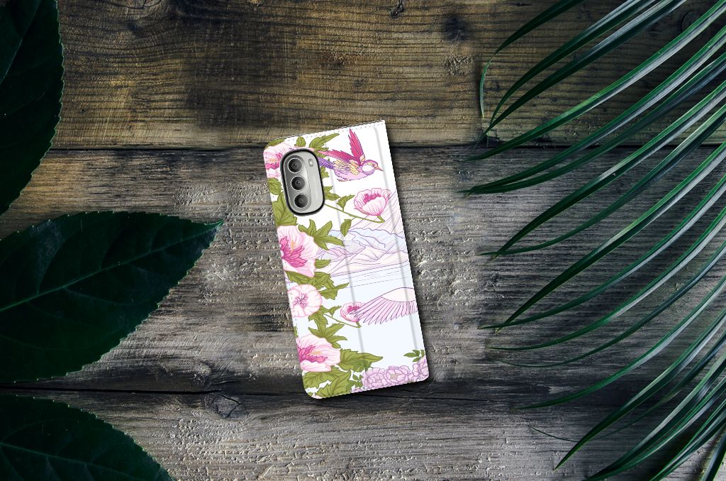 Met deze kleurrijke Motorola Moto G51 5G Hoesje maken met verschillende paarse vogels blijft jouw toestel in nieuwstaat. De paarse vogels maken het stand hoesje zeer bijzonder. Het hoesje met design Bird Standing in roze en paarse kleuren is een zeer opvallende bescherming voor je telefoon. Het kleurrijke stand hoesje met opvallende vogels beschermt jouw telefoon aan alle zijden en beschikt over een opbergvakje voor een pasje of briefgeld. De roze met paarse case sluit perfect af met de magneet aan de binnenzijde. De houder aan de binnenzijde van het schitterende stand hoesje is van TPU. Dit is ook nog eens zeer flexibel materiaal. Het pu leer aan de buitenkant oogt zeer chique. Kijk voor andere dieren op een design hoesje binnen deze fraaie collectie. Ook kun je zelf een hoesje ontwerpen met je favoriete dier.